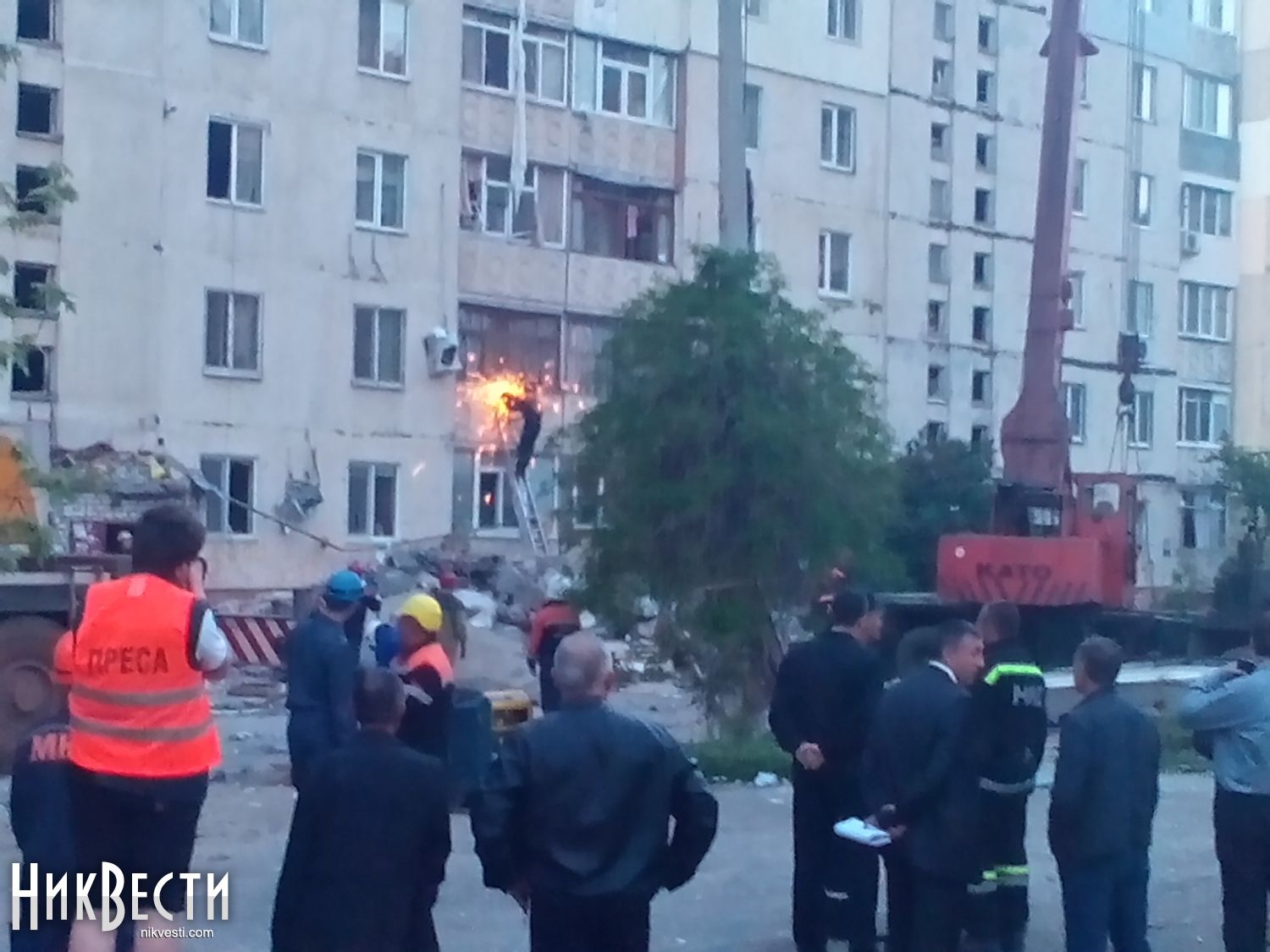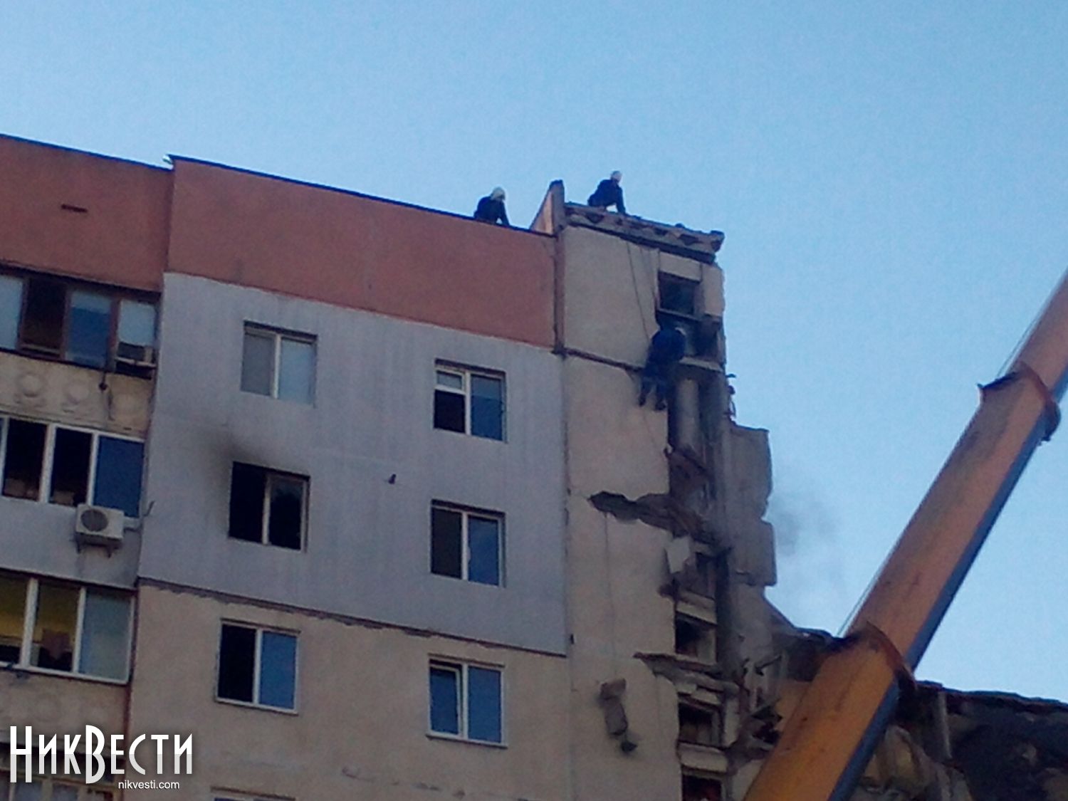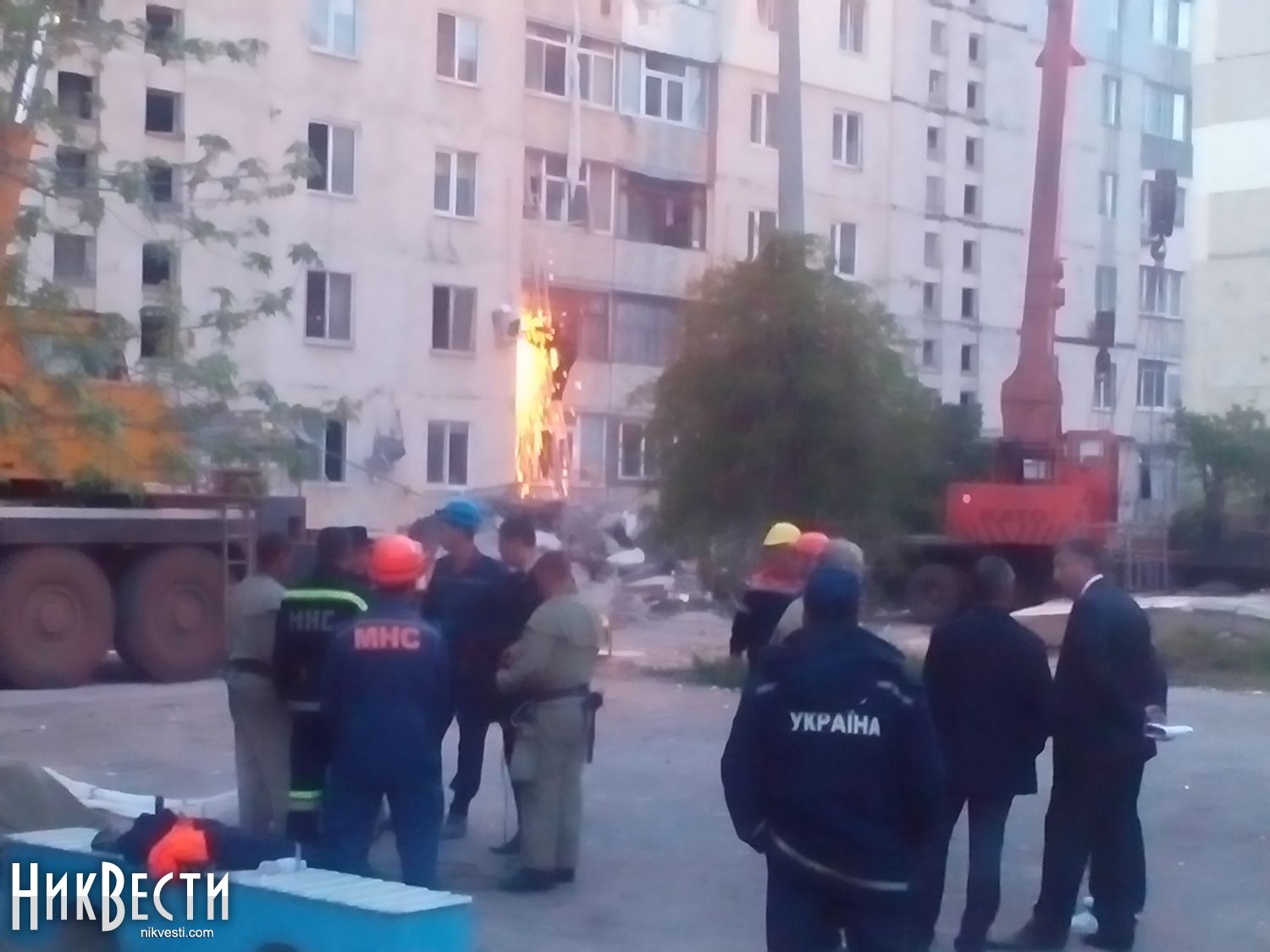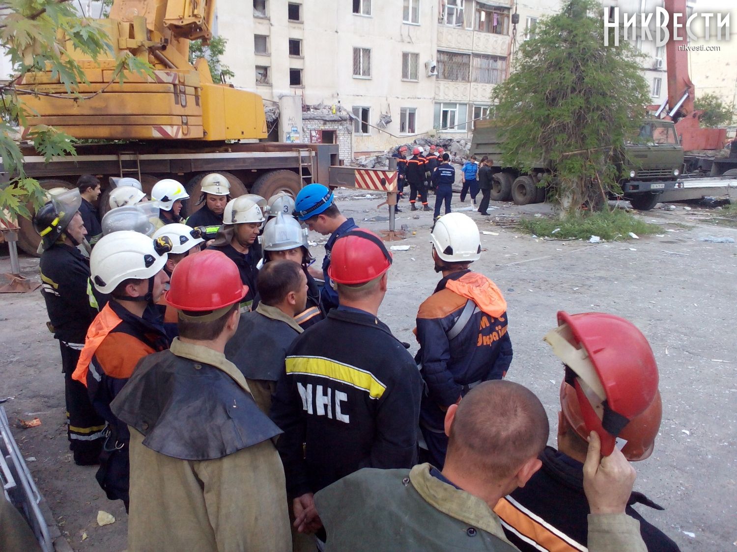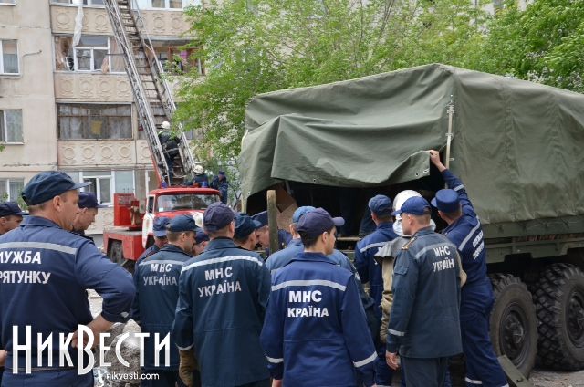 18:18. Криворожские спасатели уже прибыли в Николаев. 6 МЧС-ников уже вошли внутрь и приступили к разборке завалов.