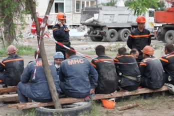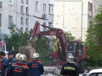 20:14 Спасатели покинули дом, поскольку планируется начинать спуск самой большой из завалившихся конструкций дома. Сегодня на 21:00 назначено большое закрытое совещание, в котором примут участие руководители МЧС, милиции и первые лица области.