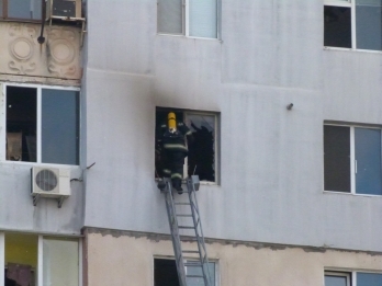 1:11. «Она над нами! Вот тут! Сверху потолка!» - кричит спасатель, находящийся у окна 7 этажа.