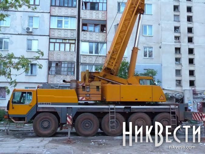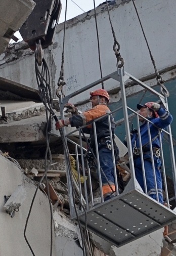 Также на место трагедии прибыл кран Liebherr для расчистки тяжелых конструкций. Он поднял двоих спасателей на крышу дома.