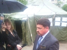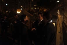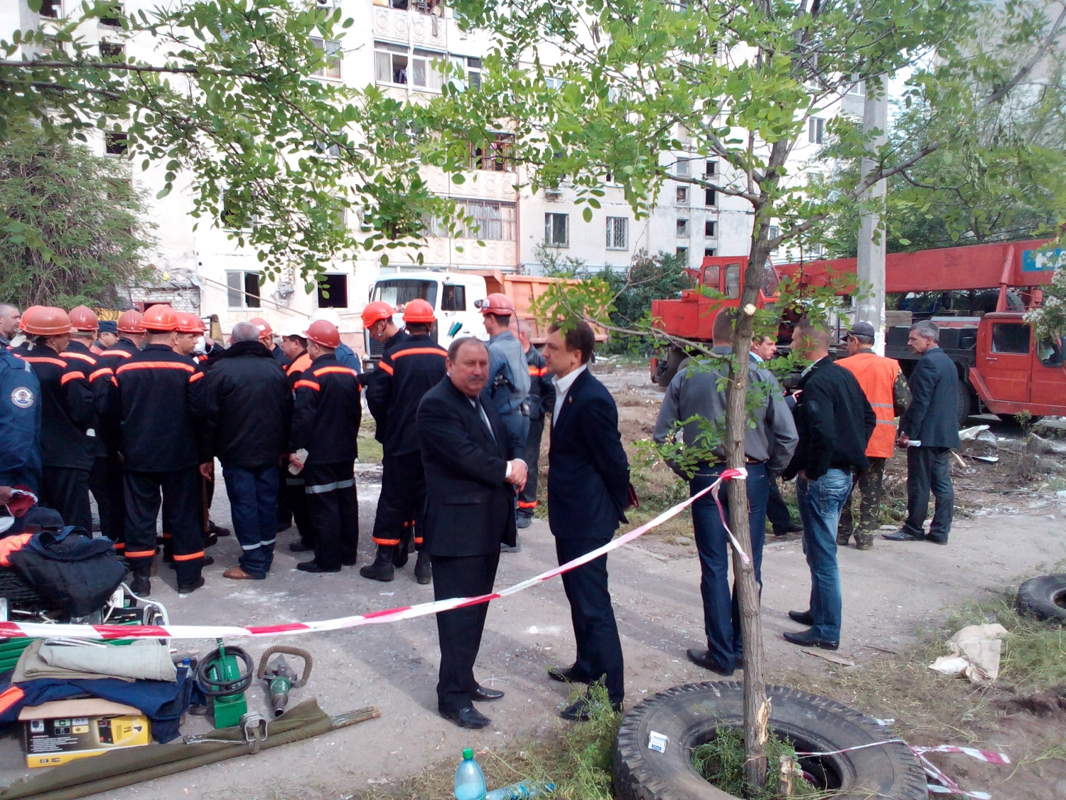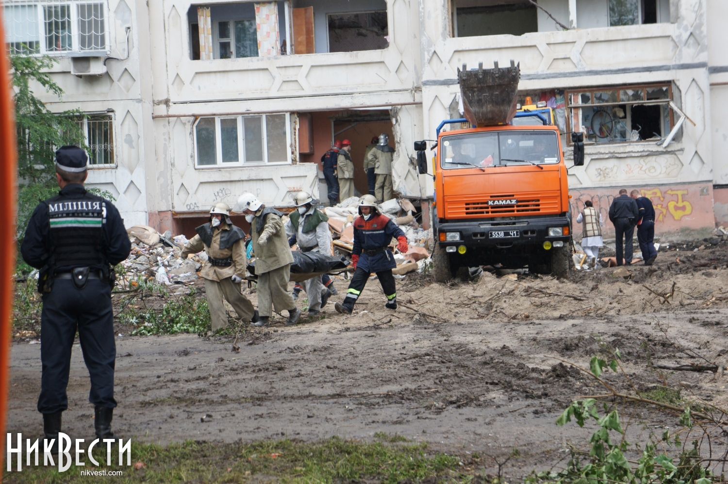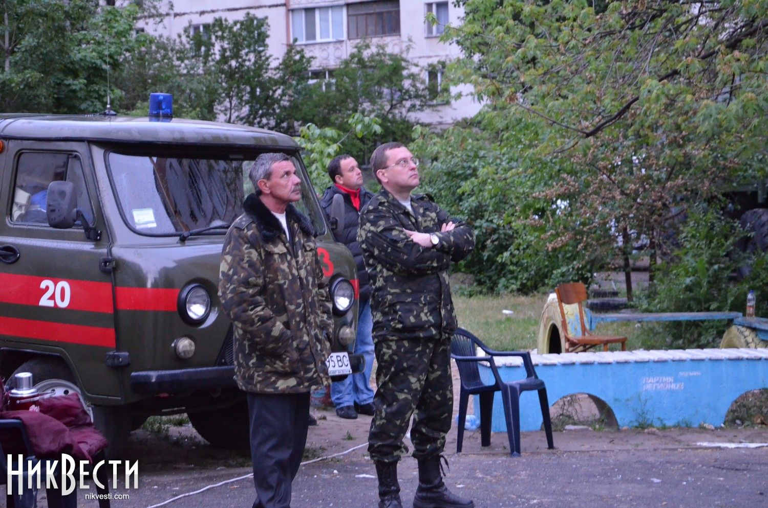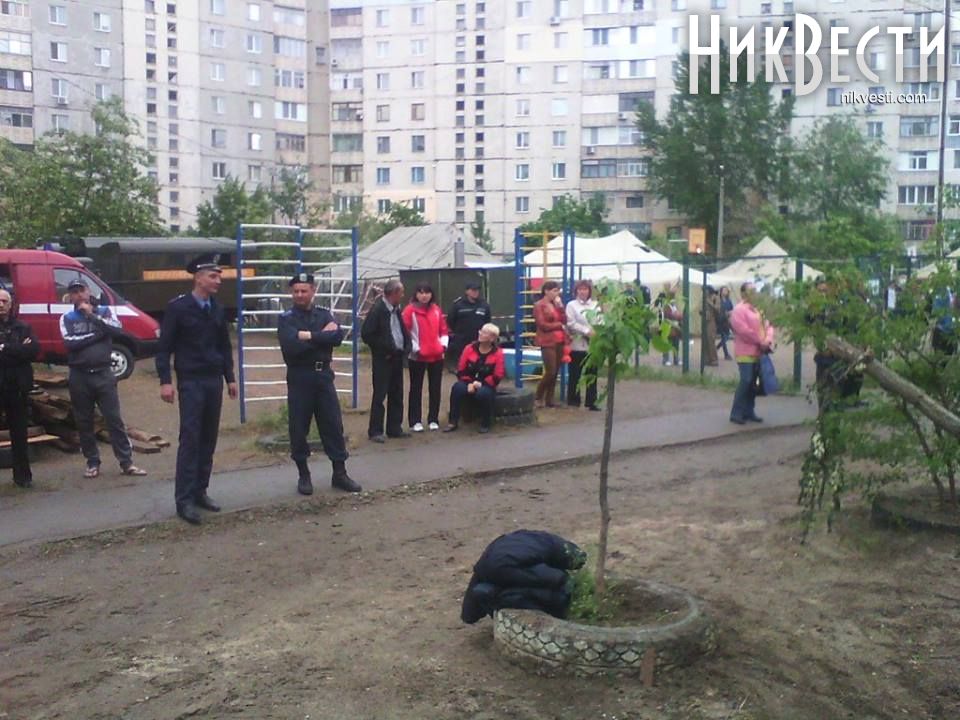 21:50. Во дворе дома, в котором произошел взрыв, председатель Николаевской ОГА Николай Романчук провел закрытое заседание по вопросам ликвидации последствий трагедии.