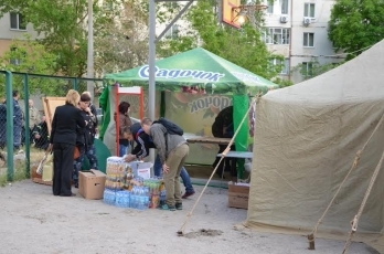 20:33. В лагере работает полевая кухня, кормят журналистов, участников операции – МЧСников, милиционеров, медиков и жителей двора по улице Лазурная.