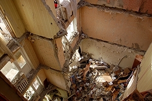 Из-за взрыва разрушились перегородки квартир, несущие стены, поэтому потерпевшая оказалась в развалинах на уровне 7 этажа.