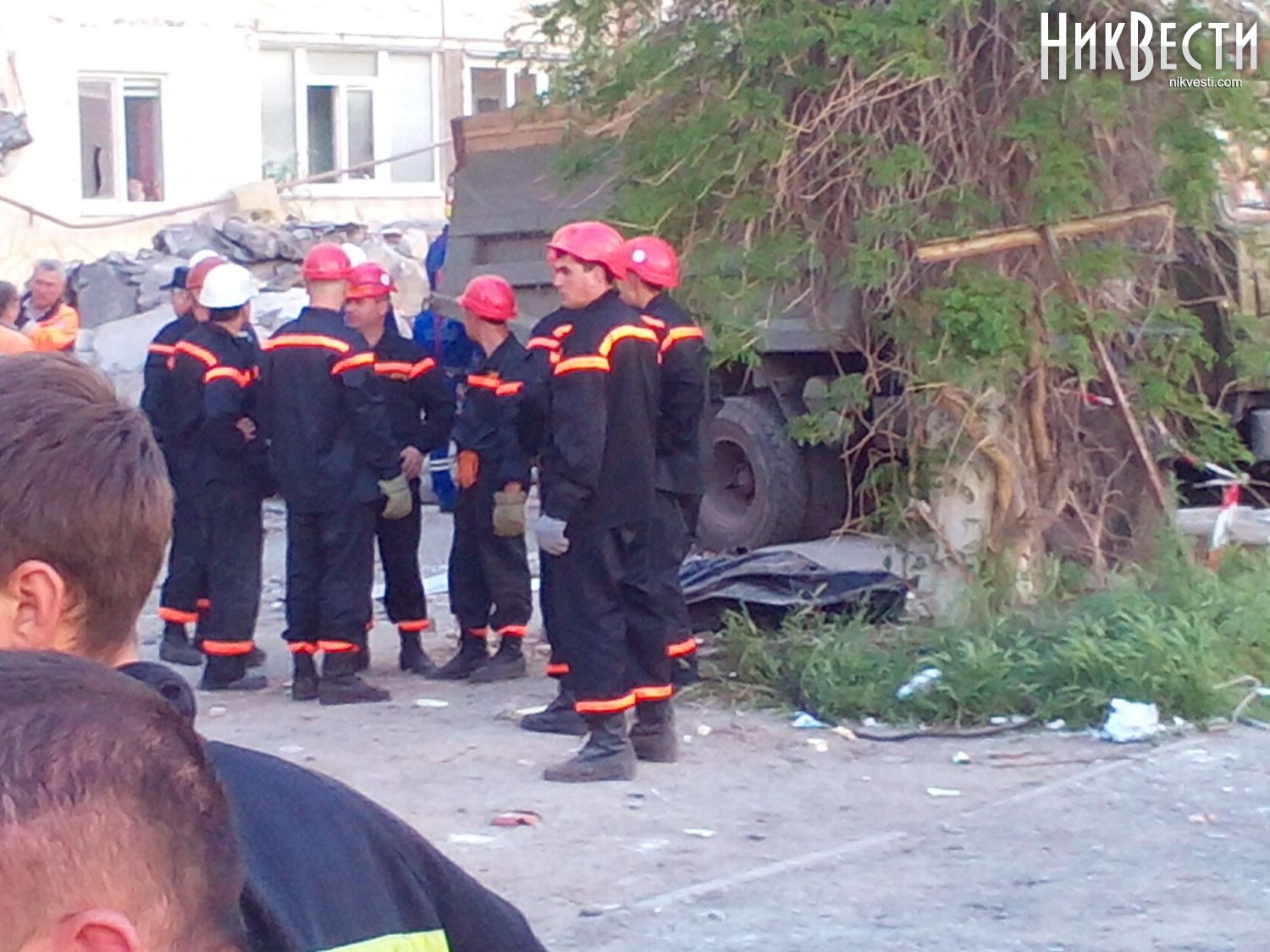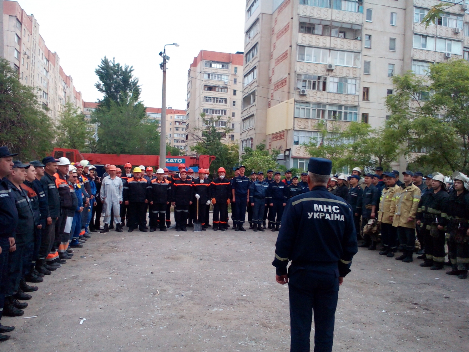 12:40. Приехал новый отряд спасателей из Кривого Рога. В данный момент на месте трагедии работаю три отряда ГСЧС. Они меняются каждые 2 часа.