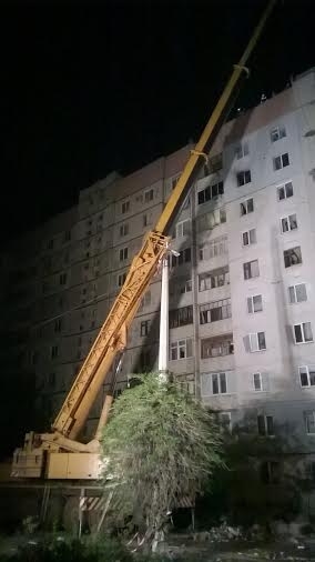 1:02. МЧСники подняли стрелу второго крана, чтоб задействовать его при расчистке завалов, в которых до сих пор находится минимум одна девушка. Из их разговоров стало известно, что пострадавшая – жительница одной из квартир на 10 этаже. Предположительно, ее зовут Ирина.