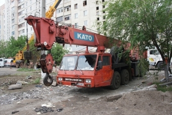 19:40. На место происшествия приехал эвакуатор, чтоб забрать 2 машины, разбитые обломками дома.