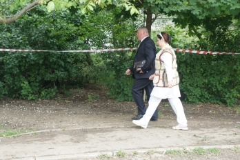 Прибывшие криминалисты зашли внутрь здания, где прошло обследование тела девушки, которое спасатели обнаружили этим утром.