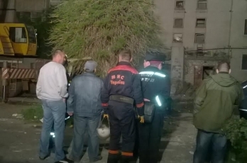 Для деблокировки пострадавшей бойцы ГСЧС приготовили лестницу и брусья для подпорки строительных конструкций.