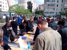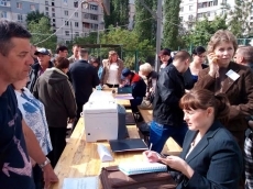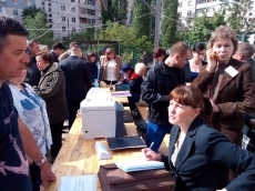 Сегодня утром в Николаеве во временный лагерь, расположенный во дворе по адресу улица Лазурная, 40 прибыли работники Пенсионного фонда и социальных служб.