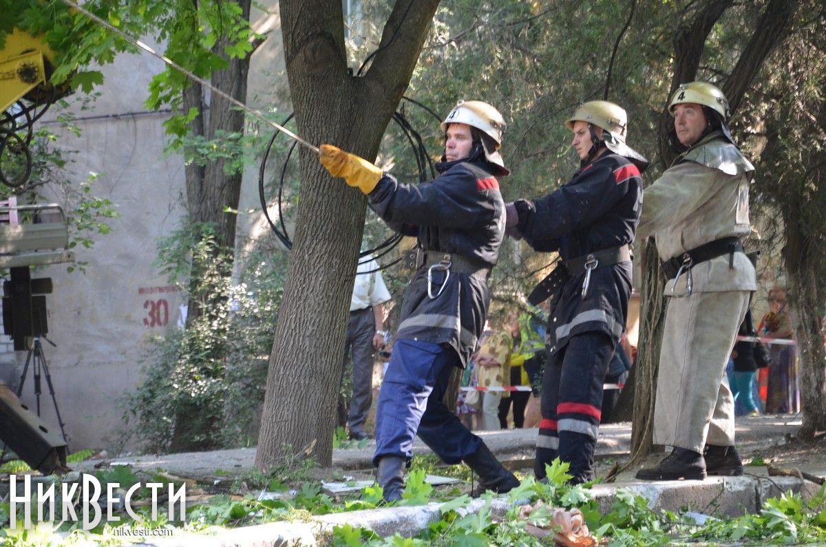 Силами городского горноспасательного отряда, а также Государственной службы по чрезвычайным ситуациям в Николаевской области проводятся работы по распилу и расчистке места происшествия от растительности.