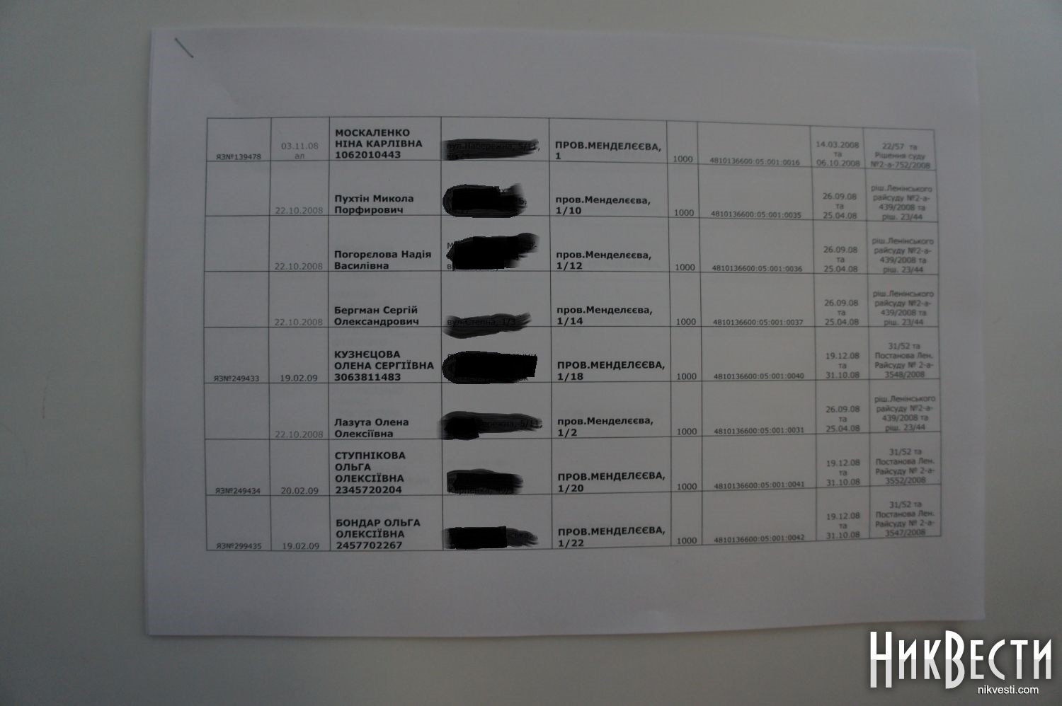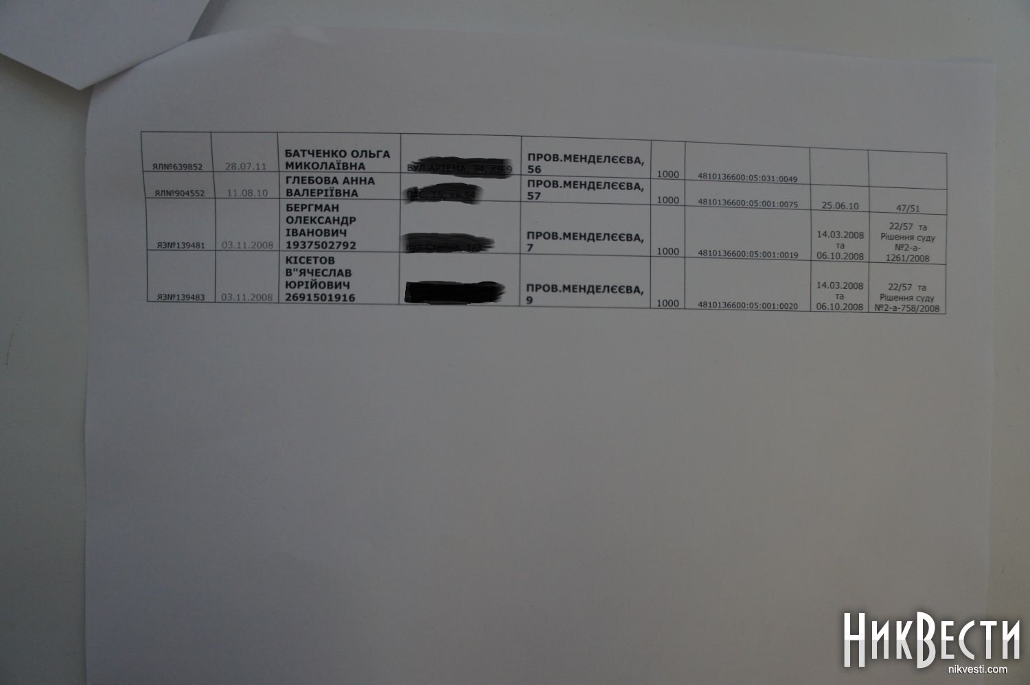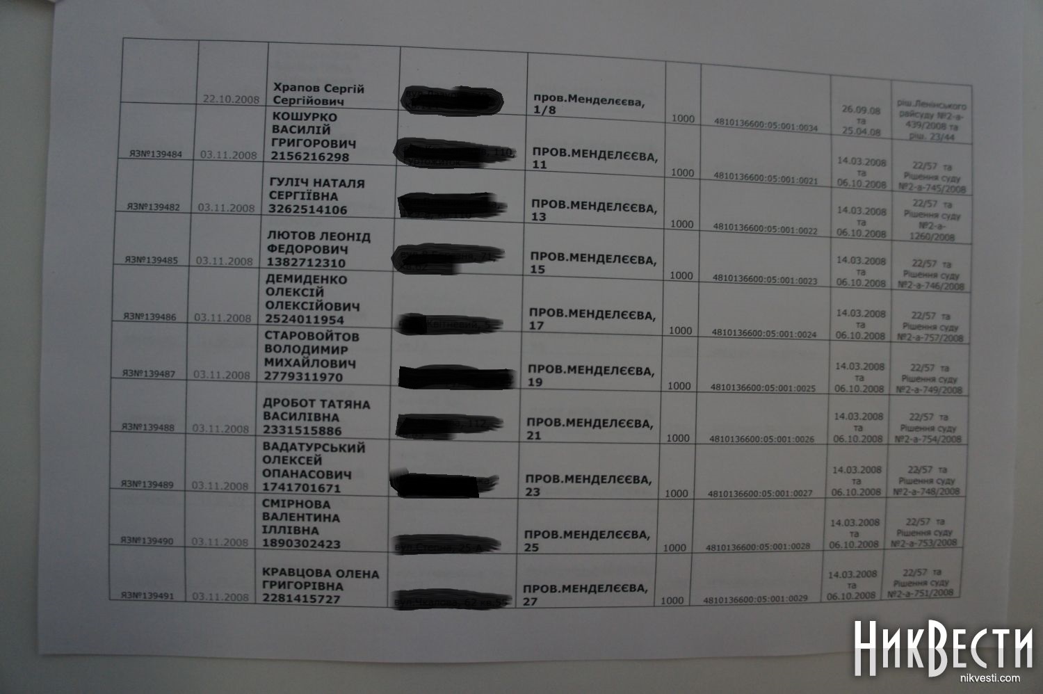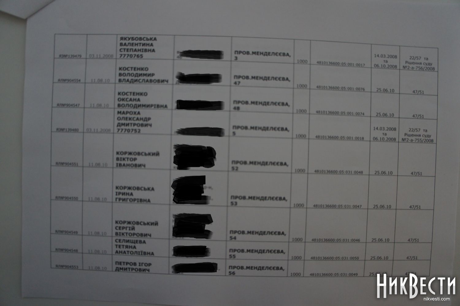 Кроме того, начальник управления земельных ресурсов добавил, что из вышеуказанного числа участков 14 были выделены на сессии городского совета, а по остальным 28 решения принимались в Ленинском районном суде города Николаева, причем суд напрямую обязывал управление земельных ресурсов города (нынешнее Госземагентство) выдавать условия выделения участков, провести экспертизу и выдать госакт на землю. Примечательно, что по законной процедуре желающие получить акт на землю должны были обращаться в облгосадминистацию, которая ведает государственной землей, но они почему-то решили сразу обращаться в суд.