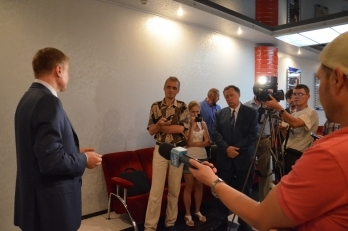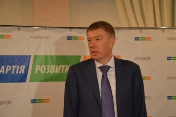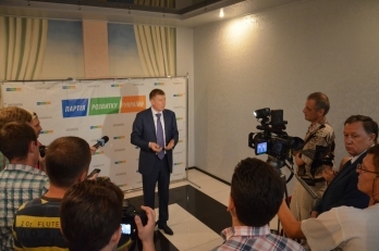 После того, как бывший вице-губернатор Николаевщины Вячеслав Рукоманов отвел Сергея Ларина от журналистов, на вопросы СМИ отвечал член исполкома партии Николай Машкин.
