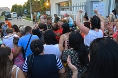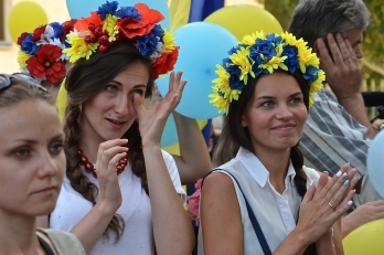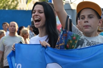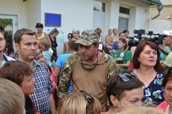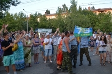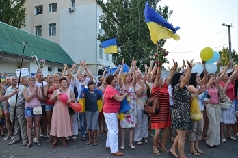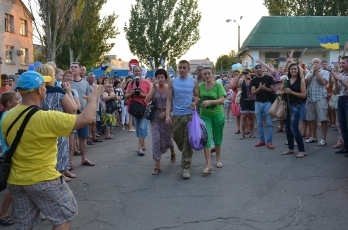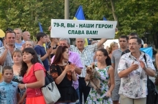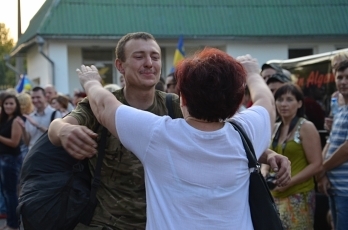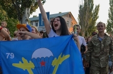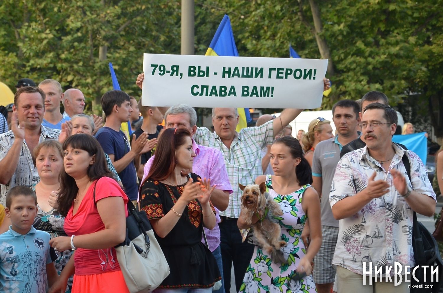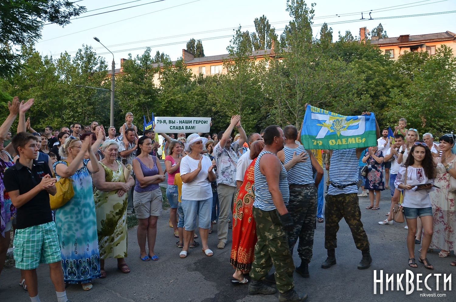 Около проходной воинской части А0224 около 18:00 собралось около 1000 человек. Многие из них вооружились плакатами, государственными флагами Украины, знаменами 79-й ОАЭМБр, одели вышиванки или просто пришли с цветами для бойцов, вернувшихся с Востока страны.