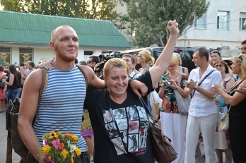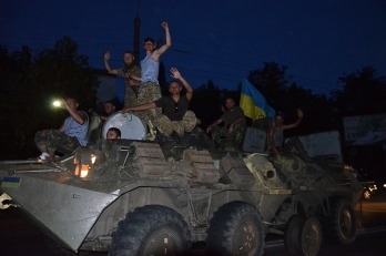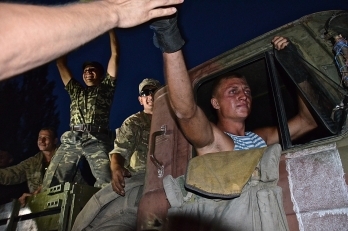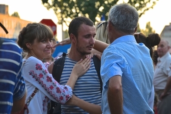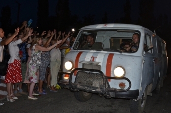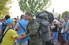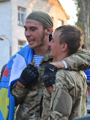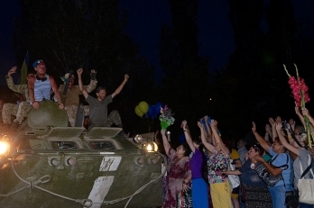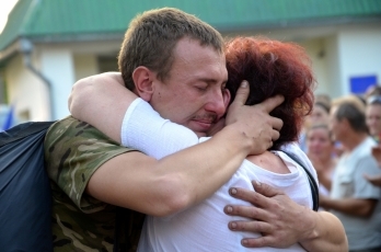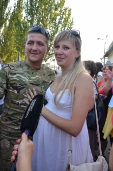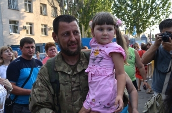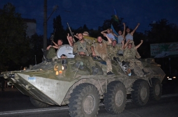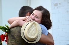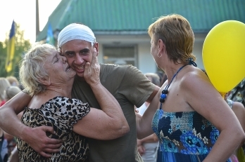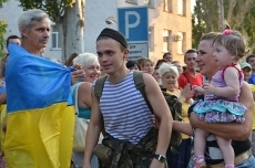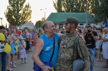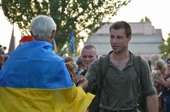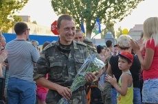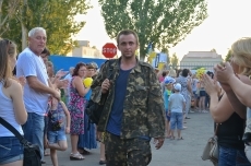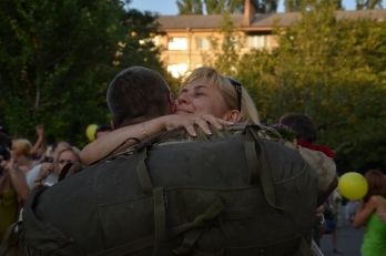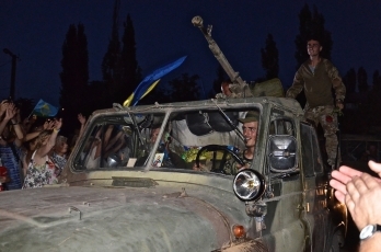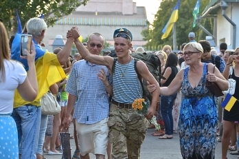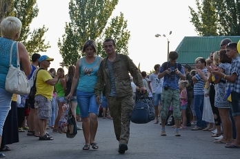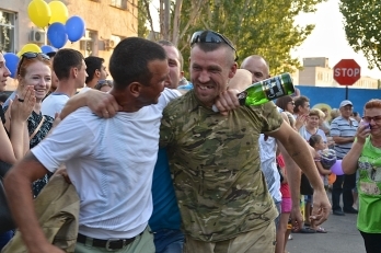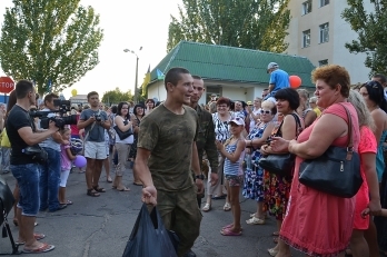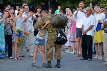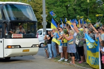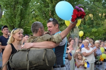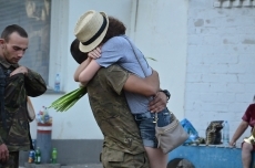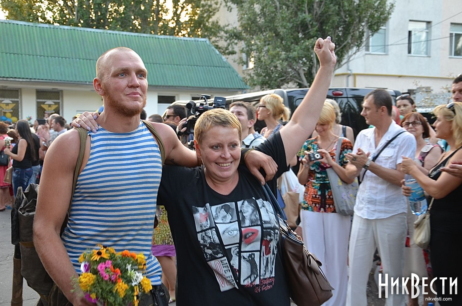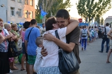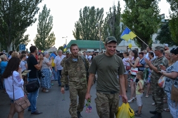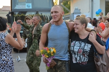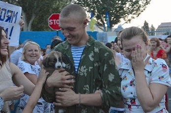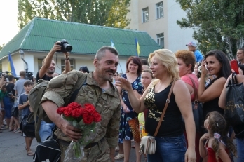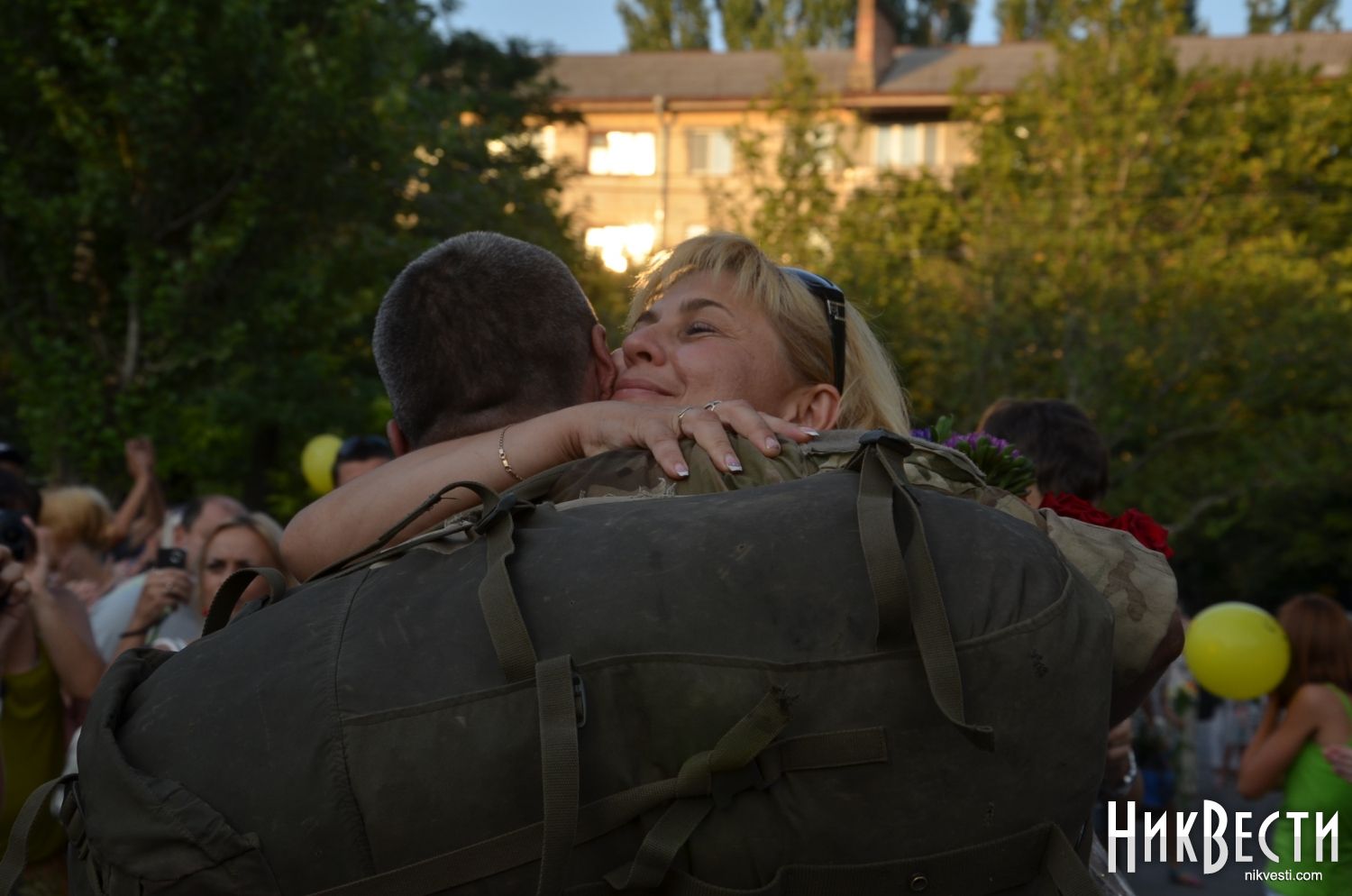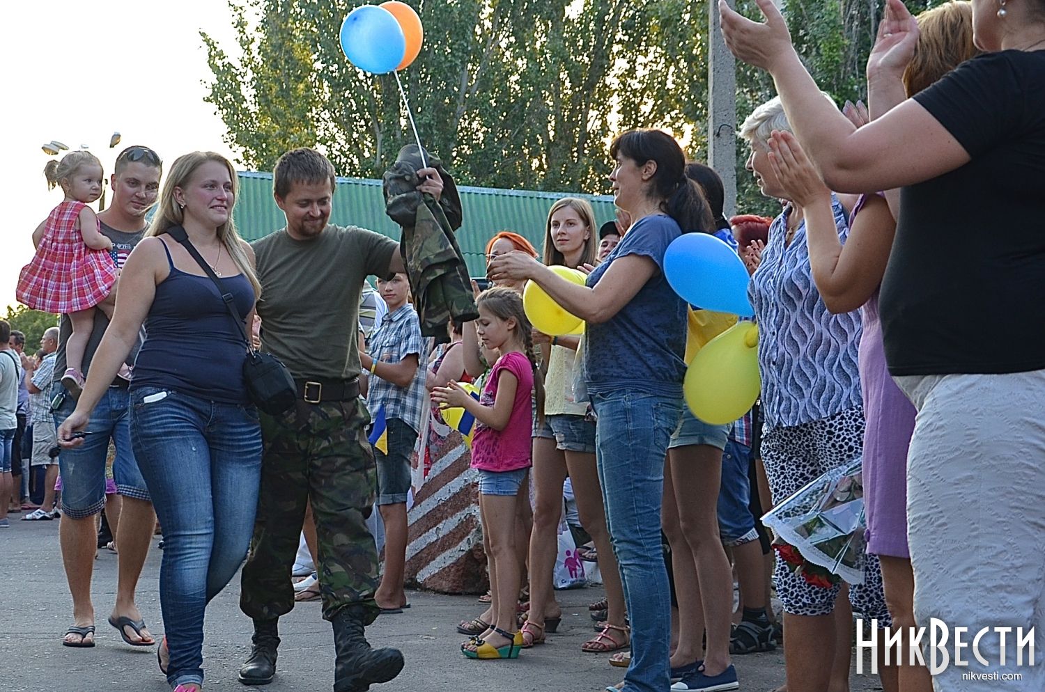 Часть военных приехала на автобусах, остальные - верхом на бронетехнике и военном транспорте. Николаевцы встречали их криками "Вы герои", "Слава героям" или просто благодарили их за проявленную отвагу и дарили цветы или обнимали.
