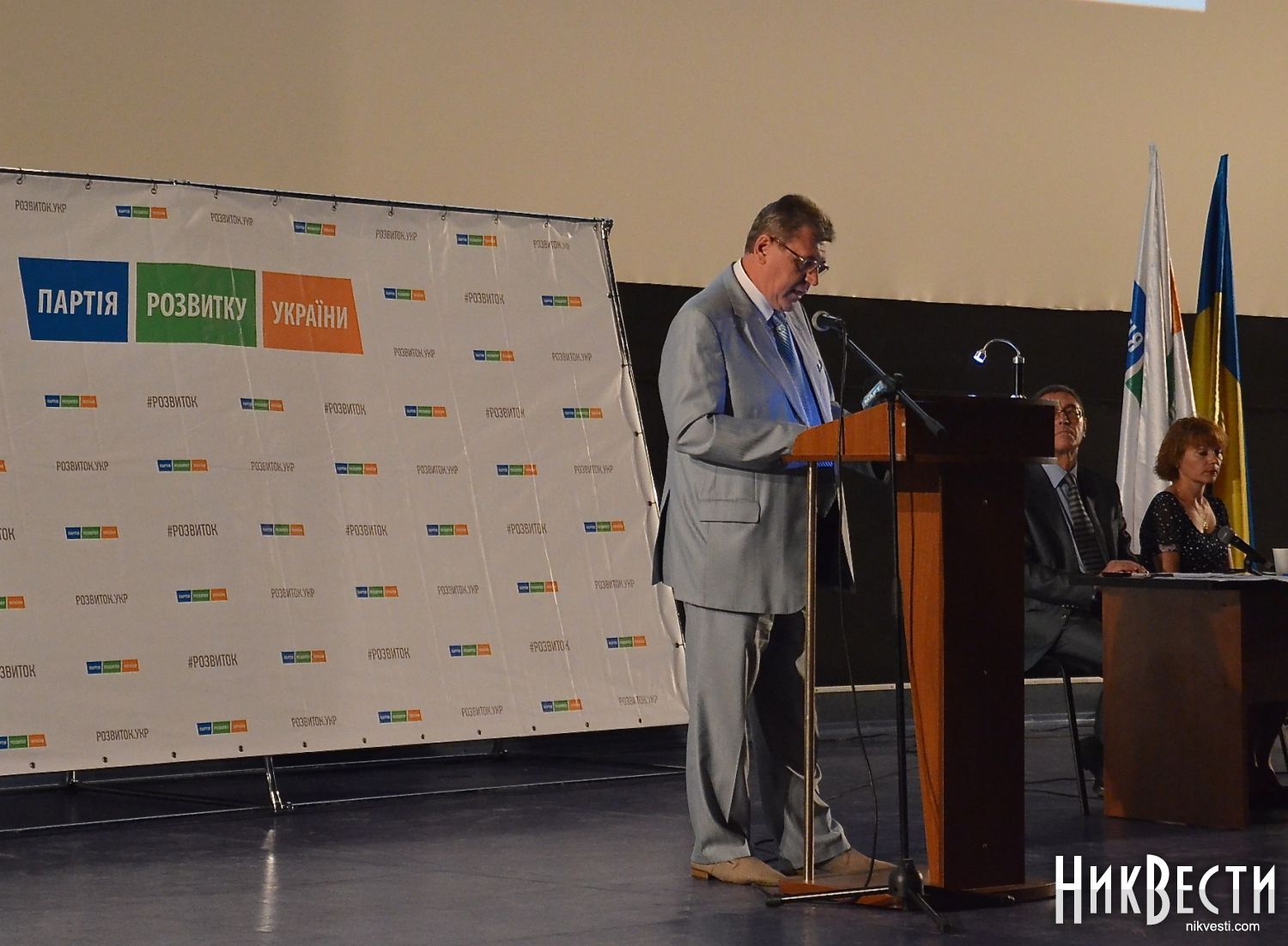 Отметим, что во время партийной конференции в Николаеве, которая состоялась в пятницу, 8 августа, председатель региональной парторганизации бывший член Партии регионов Вячеслав Рукоманов несколько раз акцентировал внимание, что «Партия развития» отказалась от вождизма, а также в ней нет места «золотым батонам и януковичам».