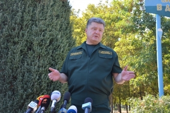 Обращаясь к военнослужащим, Петр Порошенко отметил, что украинцы не хотят войны, а он как президент хочет мира. Но мир, по его словам, будет только тогда, когда в стране будет сильная армия.
