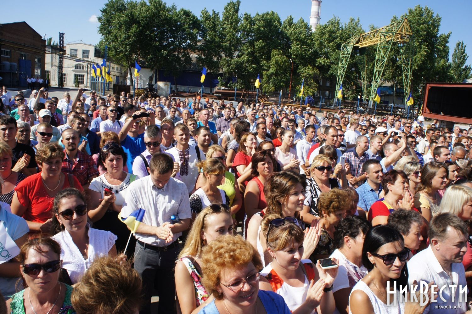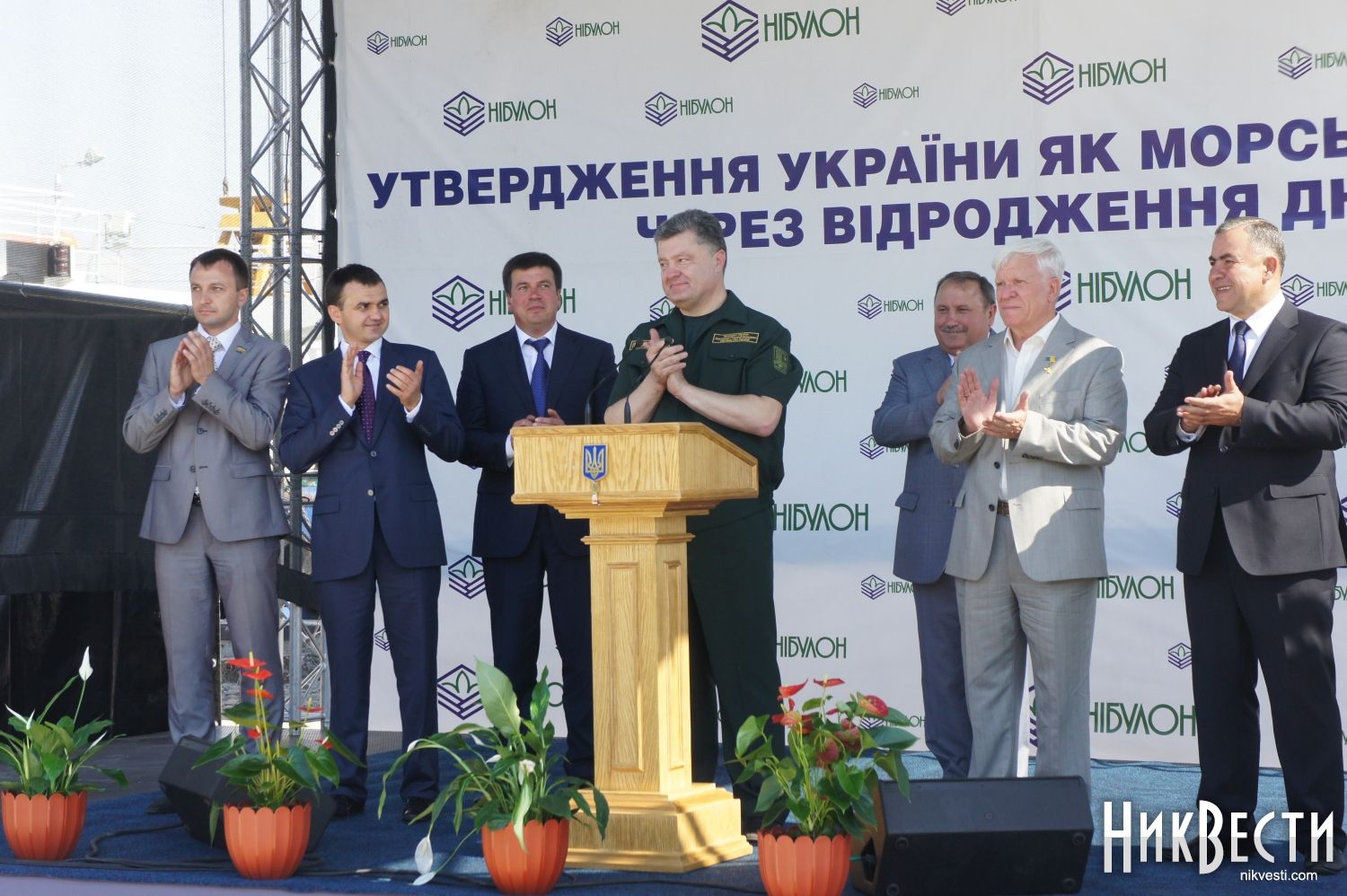 В своем выступлении Петр Порошенко ещё раз поблагодарил николаевцев за патриотизм и за то, как они встречали бойцов 79-й отдельной аэромобильной бригады по возвращению десантников из зоны АТО, а также выразил уверенность, что в скором времени Украина начнет возрождаться, причем не последнюю роль в этом процессе он отводит «НИБУЛОНу».