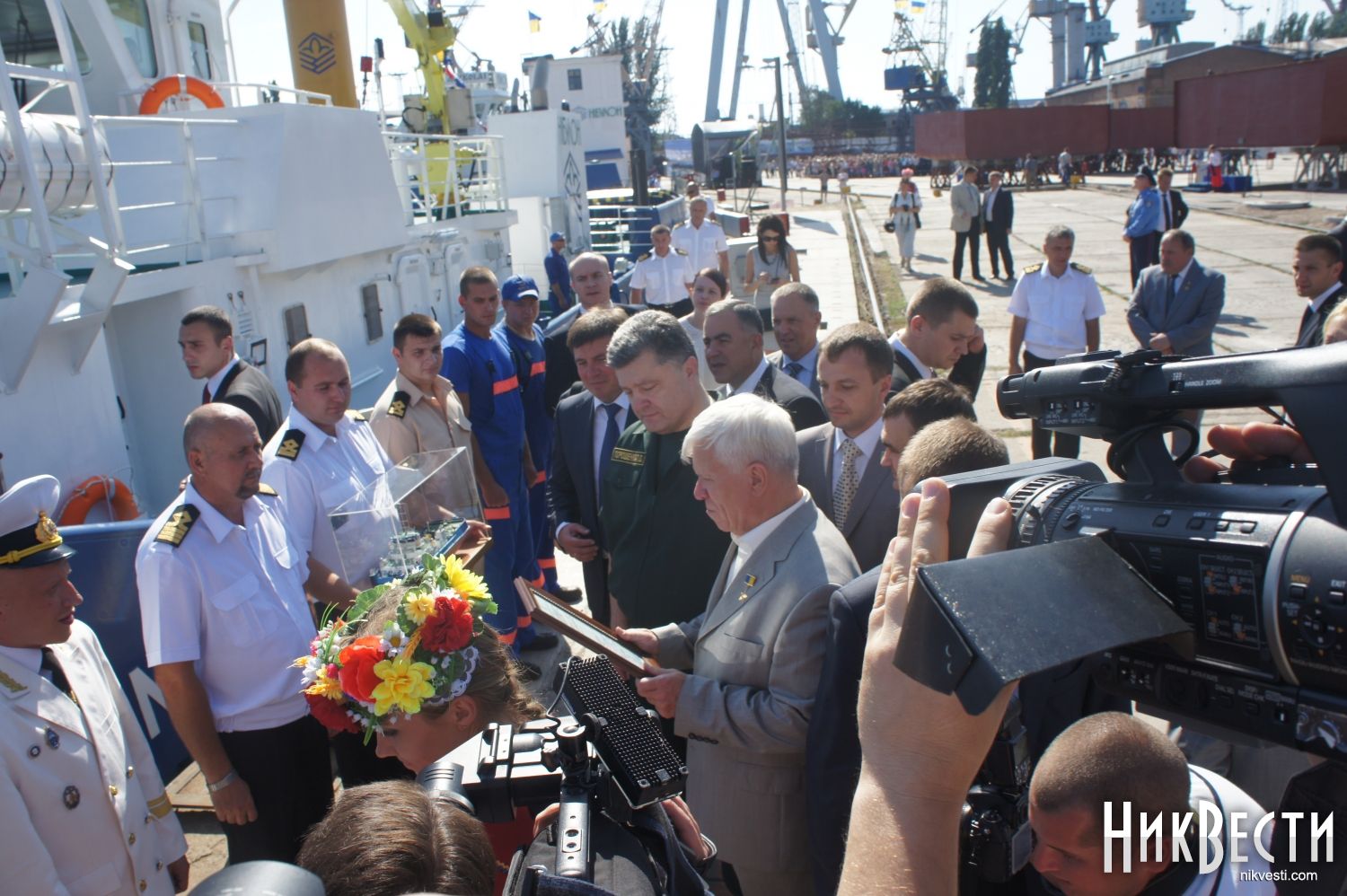 Порошенко назвал «НИБУЛОН» символом Украины и поучаствовал в спуске на воду очередного буксира компании