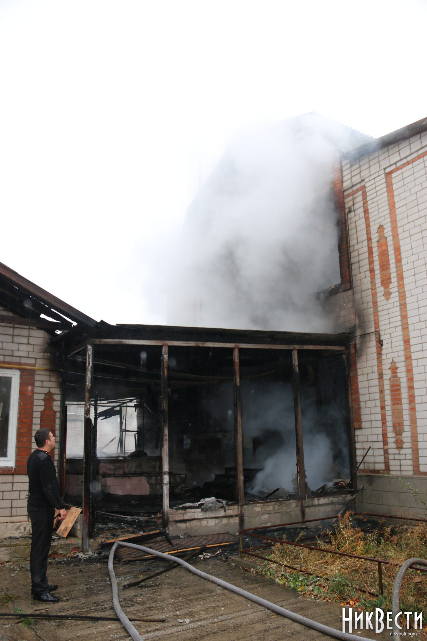 В Главном управлении Государственной службы по чрезвычайным ситуациям Украины в Николаевской области отметили, что пожар был масштабным, огонь распространился на площадь до 100 квадратных метров, так что тушить его пришлось тремя пожарными машинами. При этом называть причину пожара спасатели пока не стали. По их данным, пострадавших при возгорании нет.
