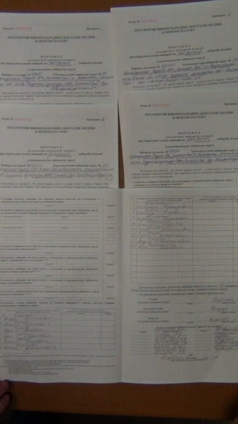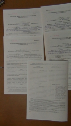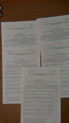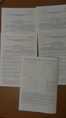 Уже в машине опешивший активист увидел, что ему переданы экземпляры бланков избирательных протоколов под номерами 1,2,5,6 и один без номера.