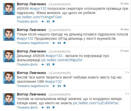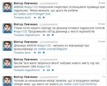 Отметим, что информацию о том, что происходят попытки захвата окружного избиркома, распространяет некто Виктор Левченко, пользуясь социальной сетью Твиттер.