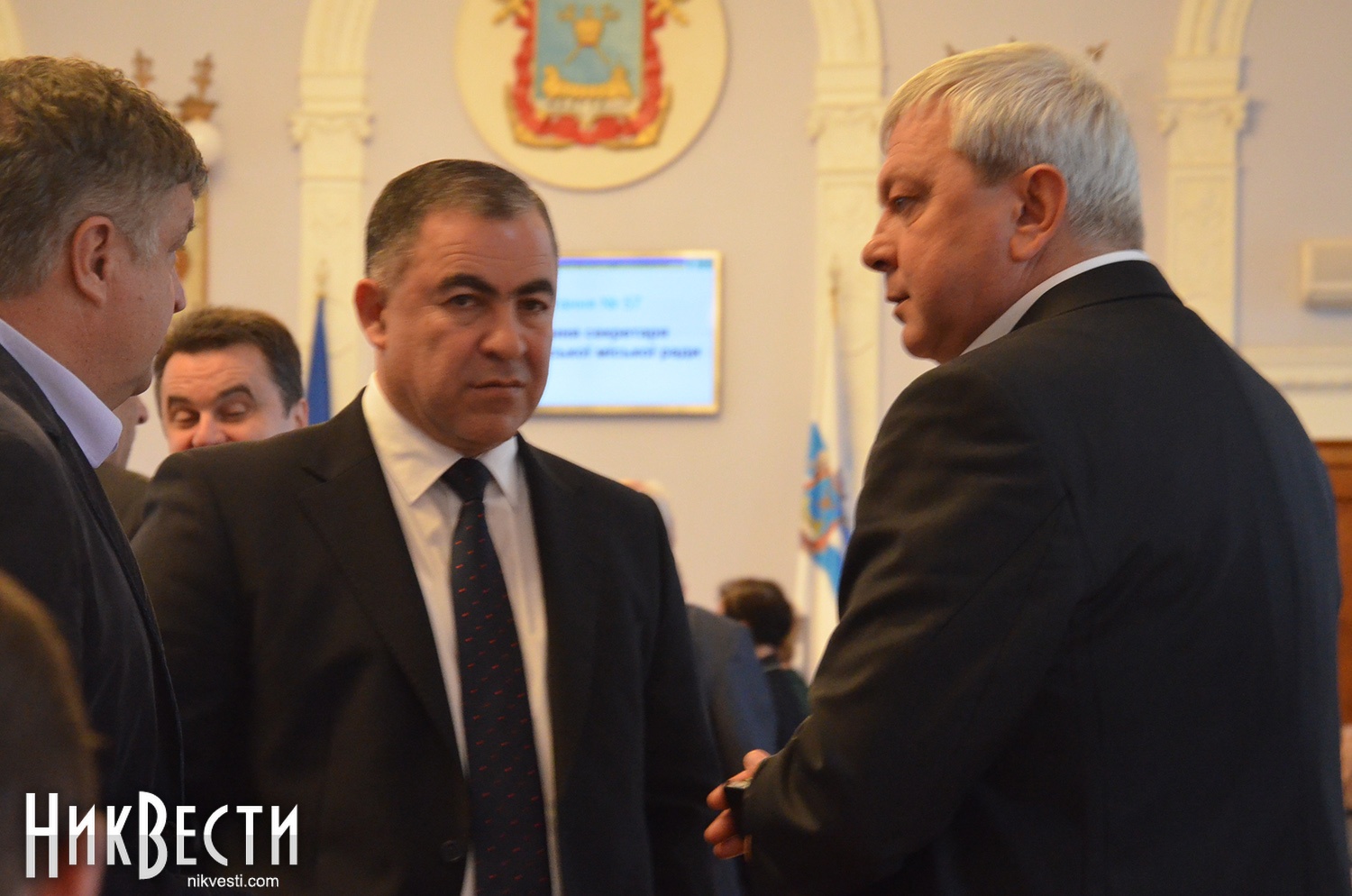 Мэр Николаева Юрий Гранатуров (слева) поздравляет нового секретаря горсовета Валерия Калашникова (справа)Депутат горсовета, бывший руководитель фракции Партии регионов в Николаевском городском совете Игорь Копейка на вопрос корреспондента, готовы ли депутаты выбрать секретаря, ответил лаконично: «Мы готовы».