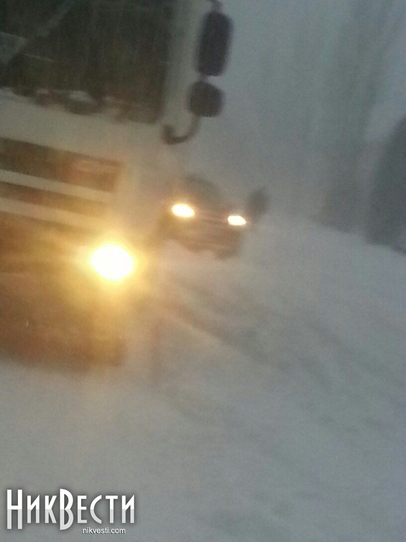 Как сообщили в пресс-службе ГАИ, в связи с ухудшением погодных условий, интенсивными снегопадами и сильным ветром возникли трудности движения транспортных средств на дорогах Николаевской области, а именно на трассе М-14 «Одесса - Мелитополь - Новоазовск», начиная от села Нечаяное до Николаева.