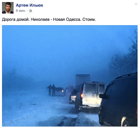 Также дорога заблокирована на трассе Р-06 «Ульяновка - Николаева» от Новой Одессы до села Баловное. Народный депутат Артем Ильюк опубликовал в Facebook фотографию и сообщил, что стоит в районе Новой Одессы. Судя по всему он возвращался в Николаев после заседания Верховной Рады, где вчера был принят бюджет на 2015 год.