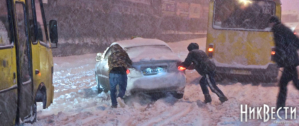 Николаевцы вышли на помощь застрявшим в снегу автомобилистам