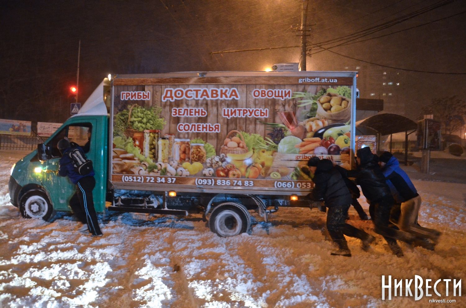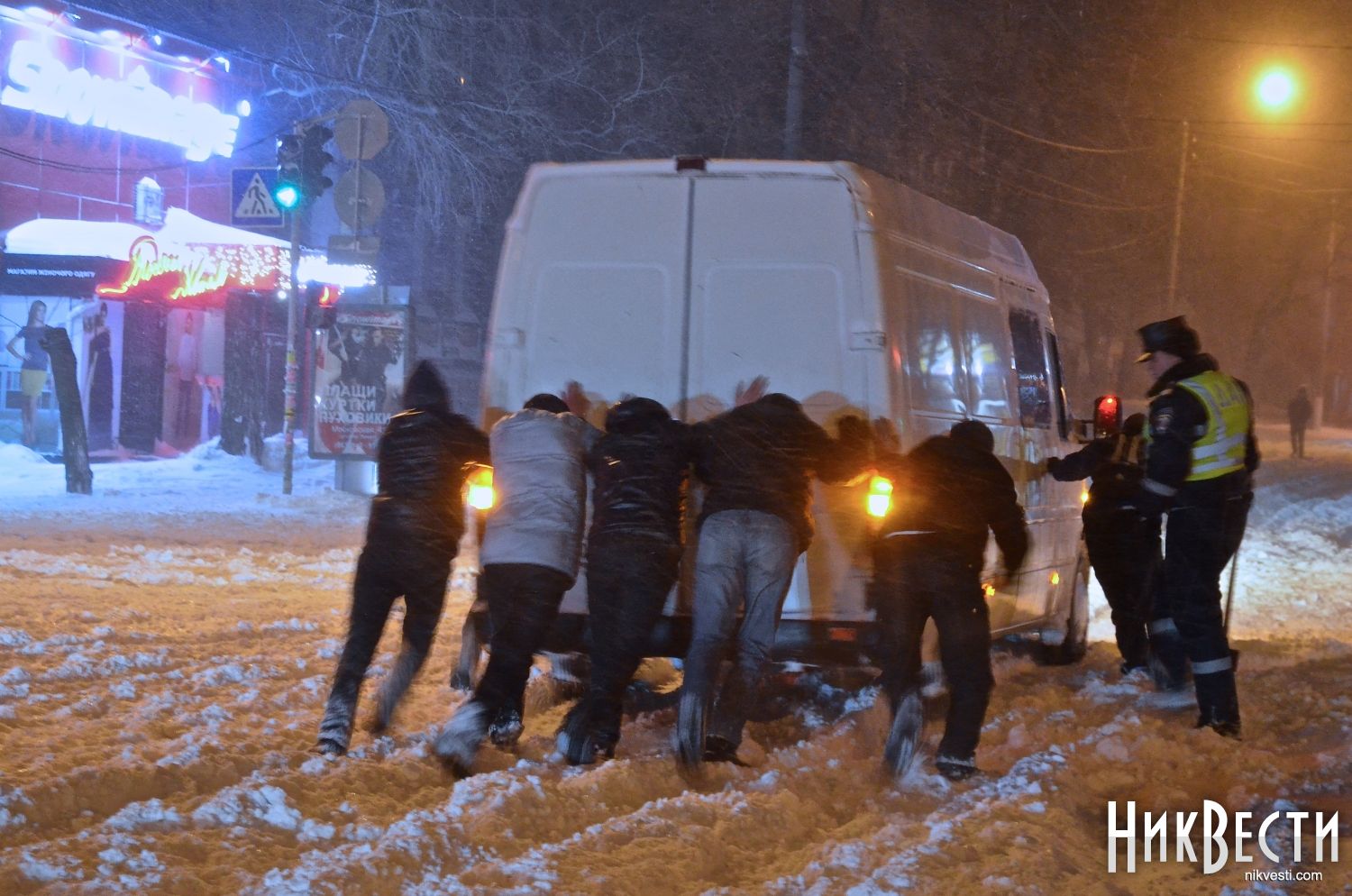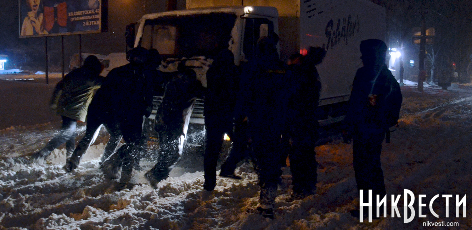 Кроме спасения машин николаевцы этой ночью также занимались тем, что помогали жителям отдаленных районов добраться домой. Их подвозили, либо искали им место, где в тепле переночевать поблизости.