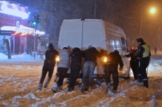 Вчера ночью практически на каждом оживленном перекрестке и дорожном кольце работала мобильная группа активистов, которые, самоорганизовававшись в социальных сетях, вышли на помощь застрявшим в снежной ловушке автомобилистам.