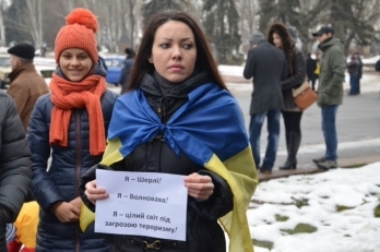 Горожане принесли с собой плакаты с надписями «Я - Волноваха», флаги, украинскую символику и лампадки, чтоб пройтись до улицы Садовой, 12. Там у Кафедрального собора Касперовской иконы Божьей Матери состоится Молебен.