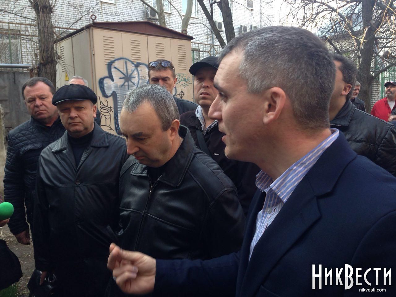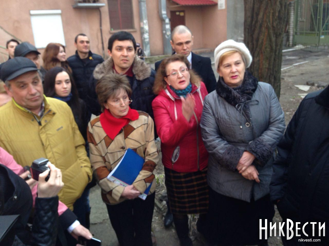 На встрече с жителями скандального дома присутствовали также начальник управления ЖКХ Николаевской ОГА Евгений Гладков, представитель Государственной службы по чрезвычайным ситуациям, представитель управления градостроительства и архитектуры ОГА, а также главный архитектор Николаева Валерий Мальченко, и.о. директора Департамента ЖКХ Николаевского горсовета Андрей Палько и представитель ЖЭКа «Центральный-1».