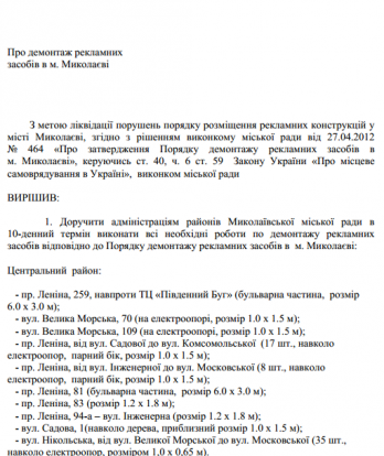 Николаевский городской голова Юрий Гранатуров не дал главному архитектору города Валерию Мальченко провести проект решения исполкома по демонтажу рекламных конструкций.