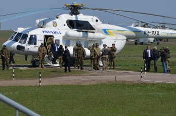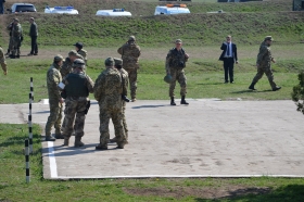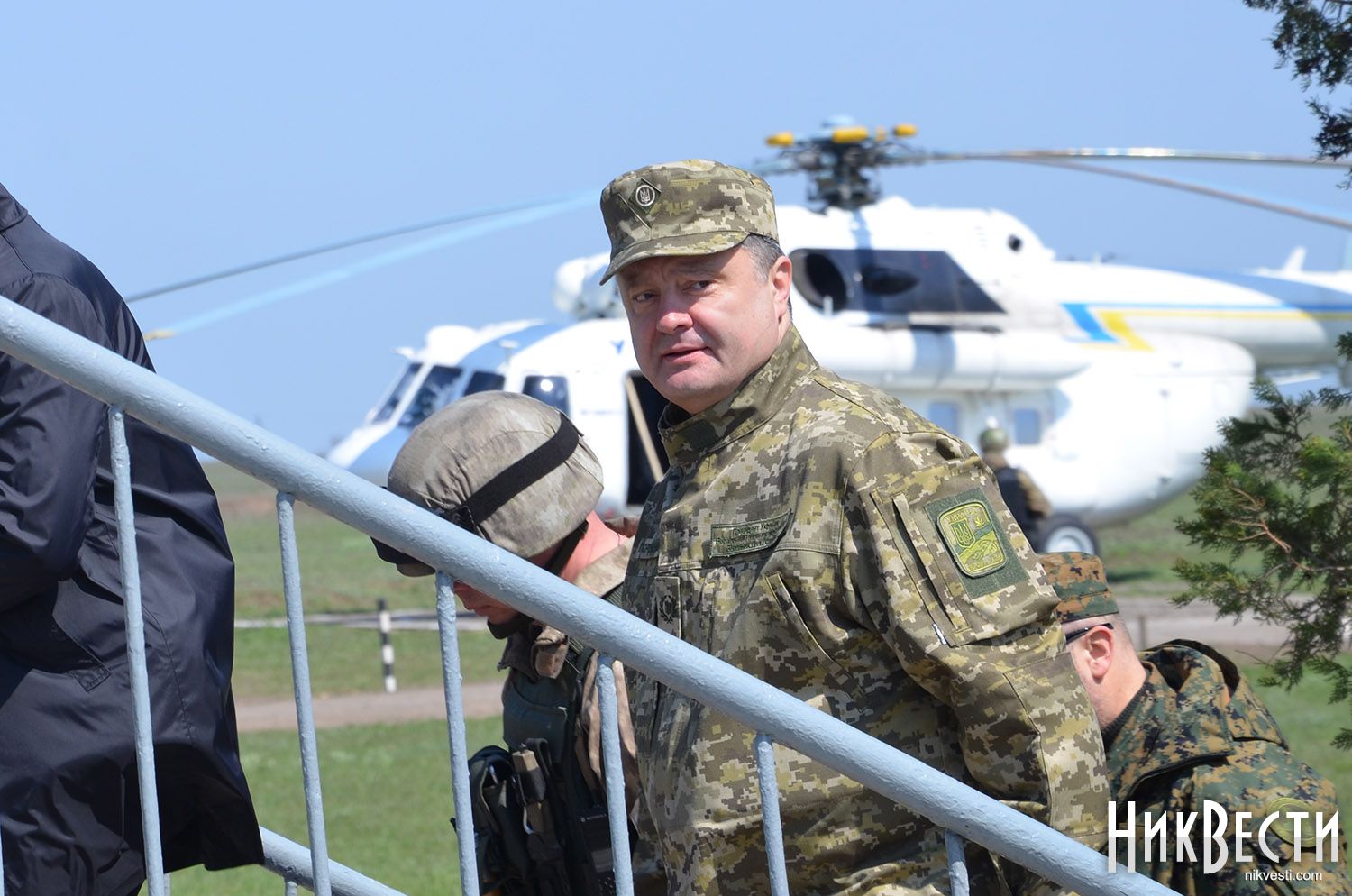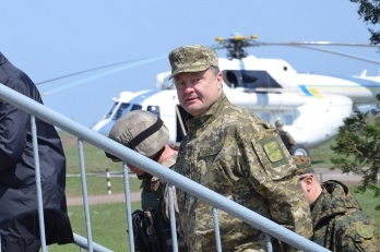В 11:30 вертолетом на полигон прибыл Верховный главнокомандующий, Президент Украины Петр Порошенко и проследовал в командный пункт.