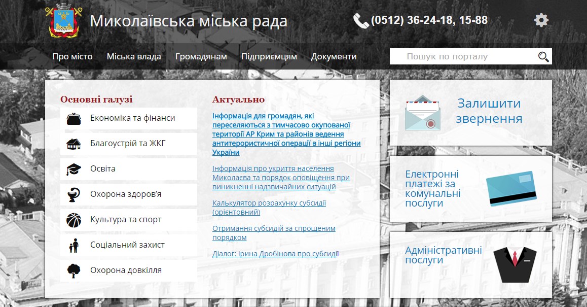 По словам управделами Николаевского горсовета Инны Бычковской, нынешний сайт мэрии, который был разработан больше 10 лет назад, на сегодняшний день уже не соответствует техническим требованием и не удобен в использовании для горожан.