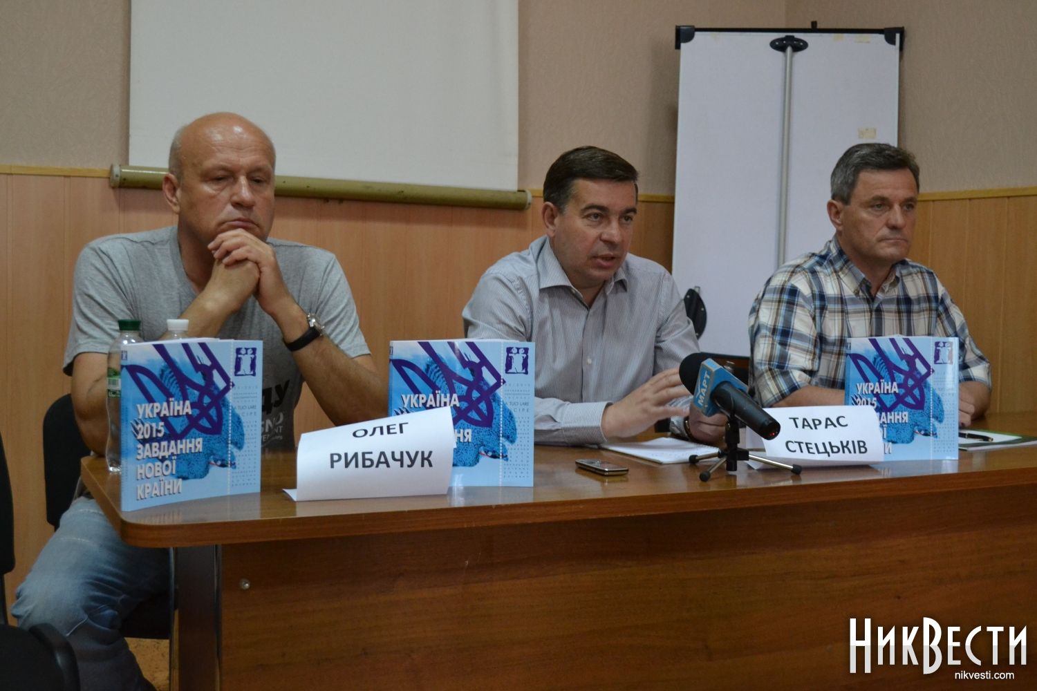 Львовское издательство «Ї» выпустило альманах «Украина 2015 - задание новой страны», презентация которого продолжается во многих городах страны. Сегодня представить книгу Николаеву прибыли политики и общественные деятели Тарас Стецькив и Олег Рыбачук, а вместе с ними финансист и банкир Виктор Жердицкий.
