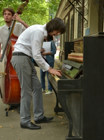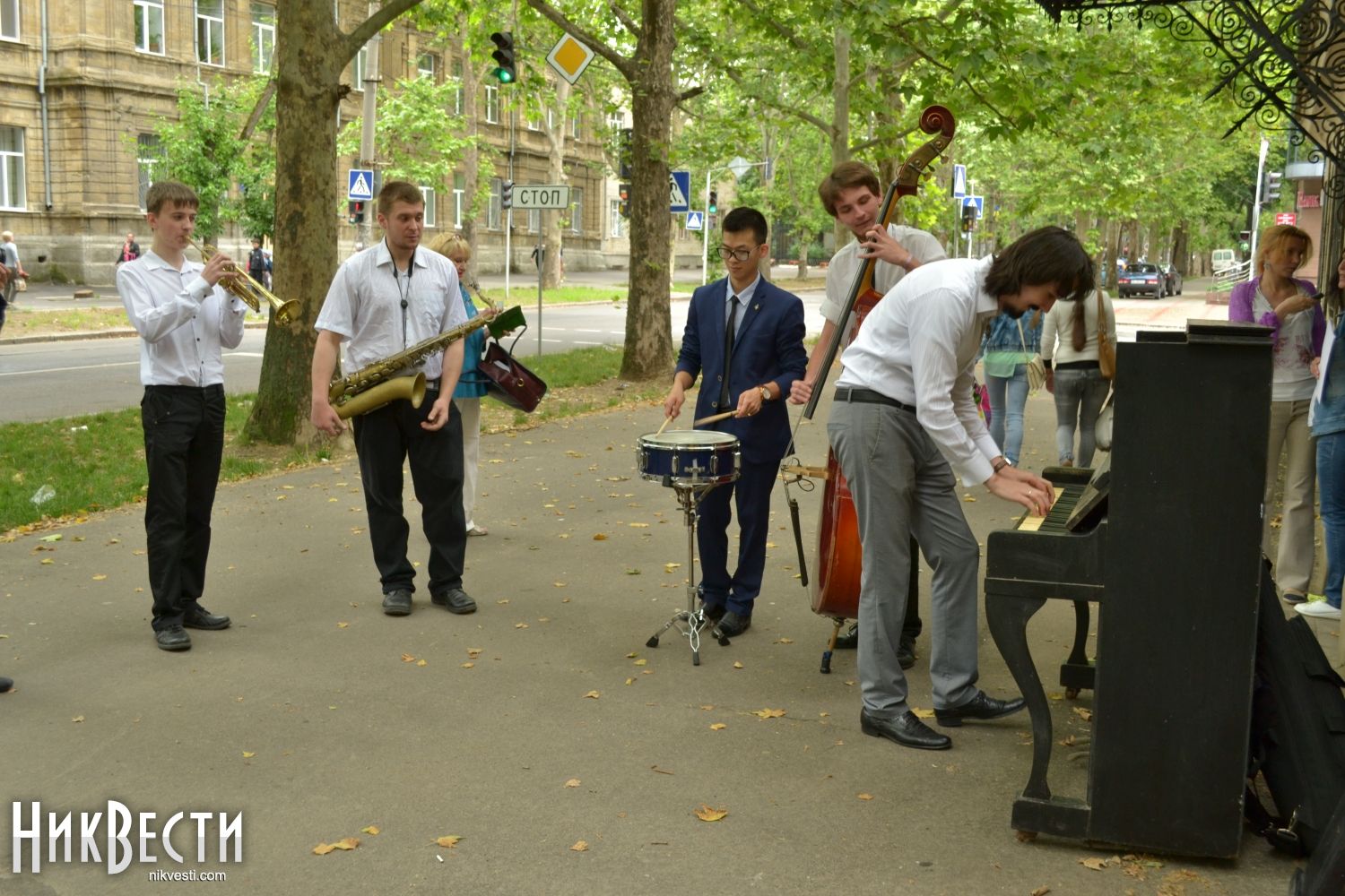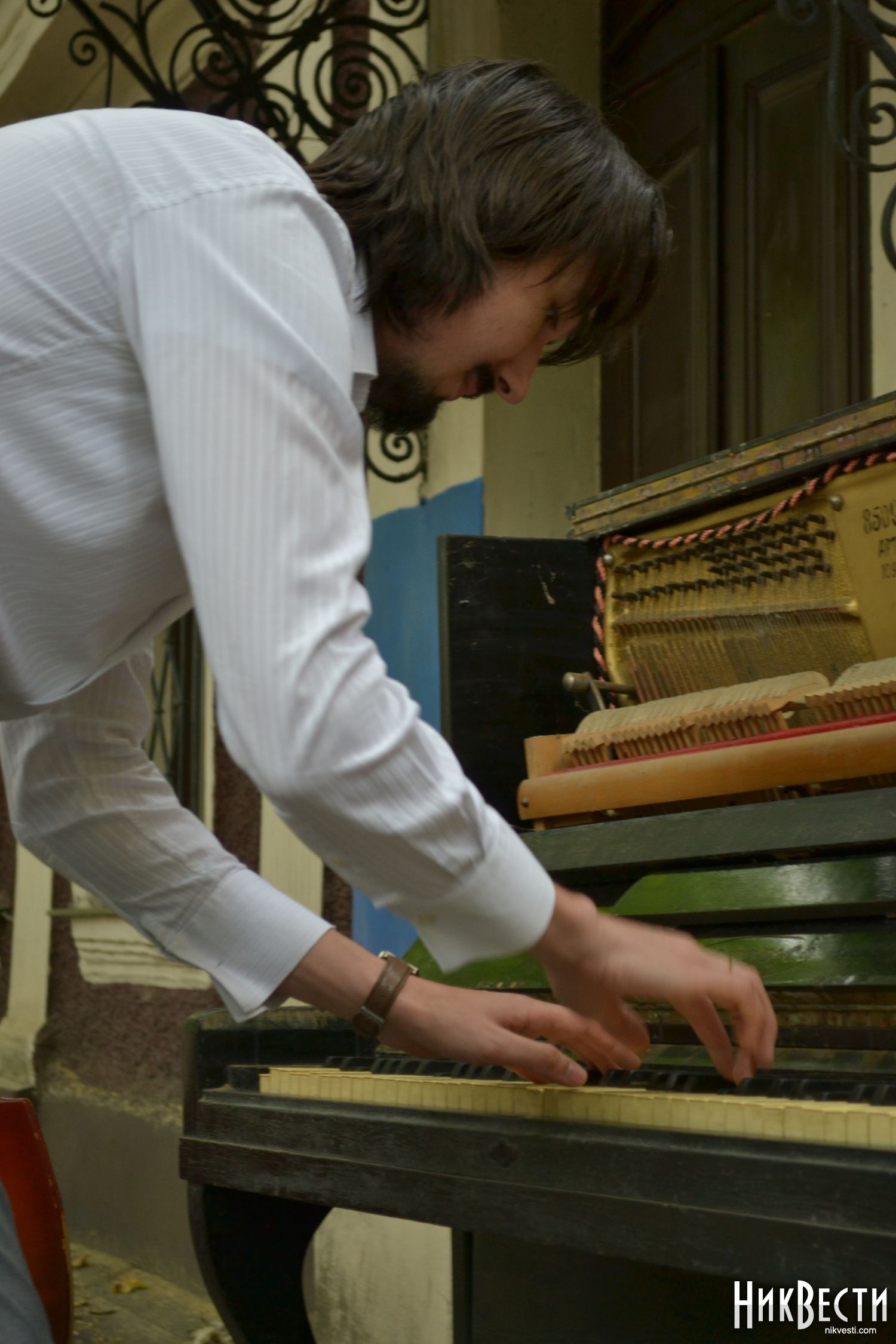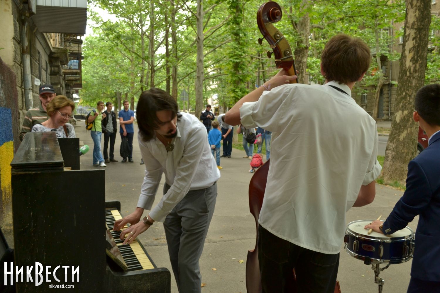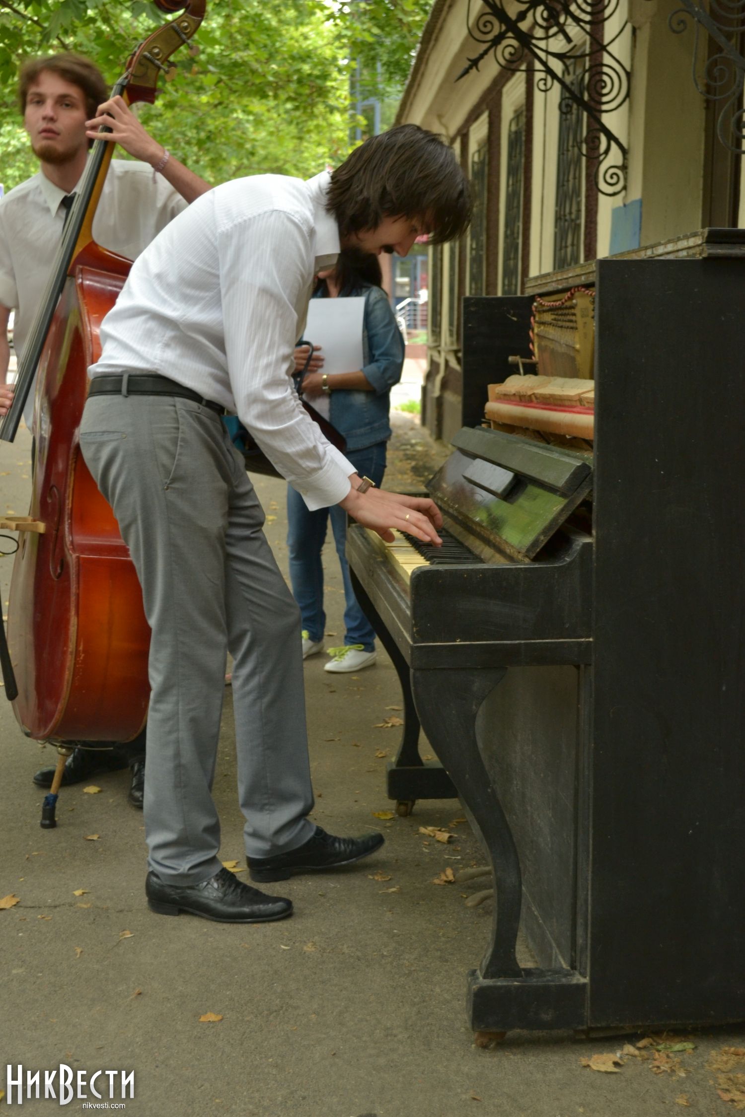 По словам джазмена, ему просто позвонили друзья – общественные активисты Анна Шаловинская и Роланд Байрозян и рассказали о найденном в самом центре города пианино. Практически тут же родилась идея устроить небольшой, но яркий перфоманс для горожан, передает корреспондент НикВестей.