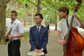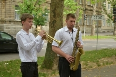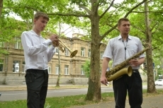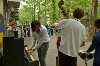 Сегодня, 18 июня, в обеденный перерыв привычный ритм жизни Николаева нарушил джаз-бэнд Владимира Алексеева, отыгравший спонтанный мини-концерт на улице Адмиральской около "Молодежного центра".