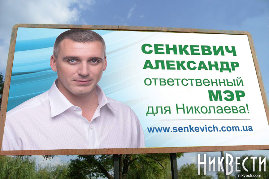 Изображение одного из лидеров николаевской «Самопомощи» Александра Сенкевича, свидетельствующее о его амбициях занять пост мэра Николаева, сегодня вечером было размещено на билбордах города.