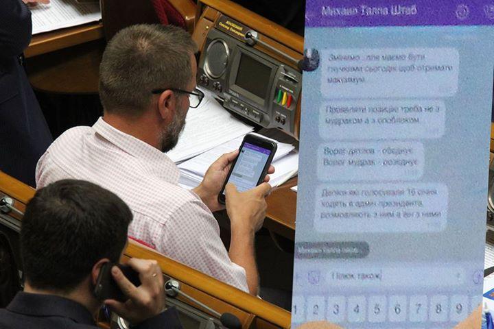 – Изменим... но должны быть более гибкими, чтоб получить результат. Проявлять позицию нужно не с Мудраком, а с Оппоблоком. Враг Дятлов объединяет, враг Мудрак - разъединяет. Депутаты, которые голосовали 16 января, ходят в администрацию президента, разговаривают с ним, а он с нами, - написал Михаил Талпа нардепу Андрею Вадатурскому.