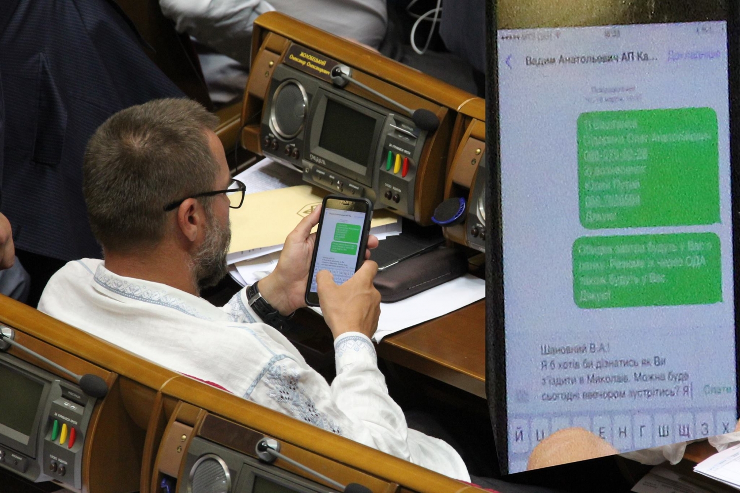 Фотография, где запечатлена переписка народного депутата, опубликована на странице Депутаты.ФотоЛікс в социальной сети Facebook.