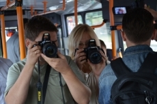 Во время поездки Юрий Гранатуров рассказывал пассажирам, что чешские троллейбусы значительно меньше потребляют энергии на спуске.
