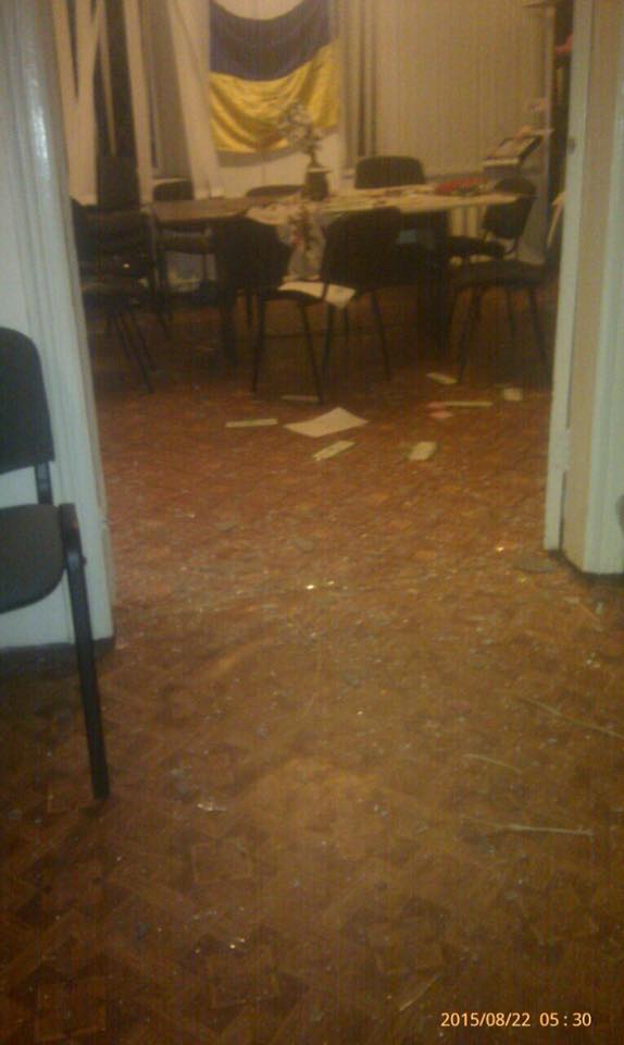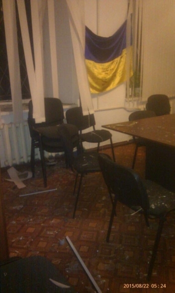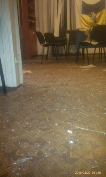 Как сообщает корреспондент НикВестей с места событий, было подорвано окно в одном из помещений здания Молодежного центра.
