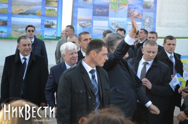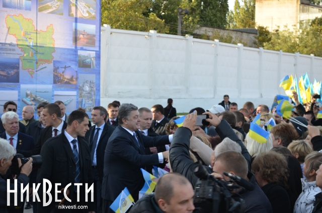 Президент Украины Петр Порошенко прибыл в Николаев. Главу государства встретили на территории судостроительного завода компании «НИБУЛОН».