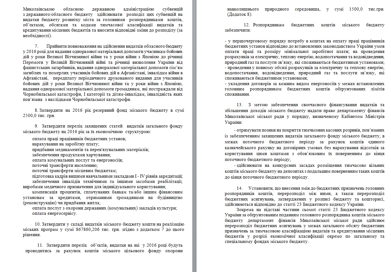 Ранее члены исполкома Николаевского городского совета поддержали проект решения о бюджете города на 2016 год с общим объемом в 1 миллиард 923 миллиона 803 тысячи 452 гривны.
