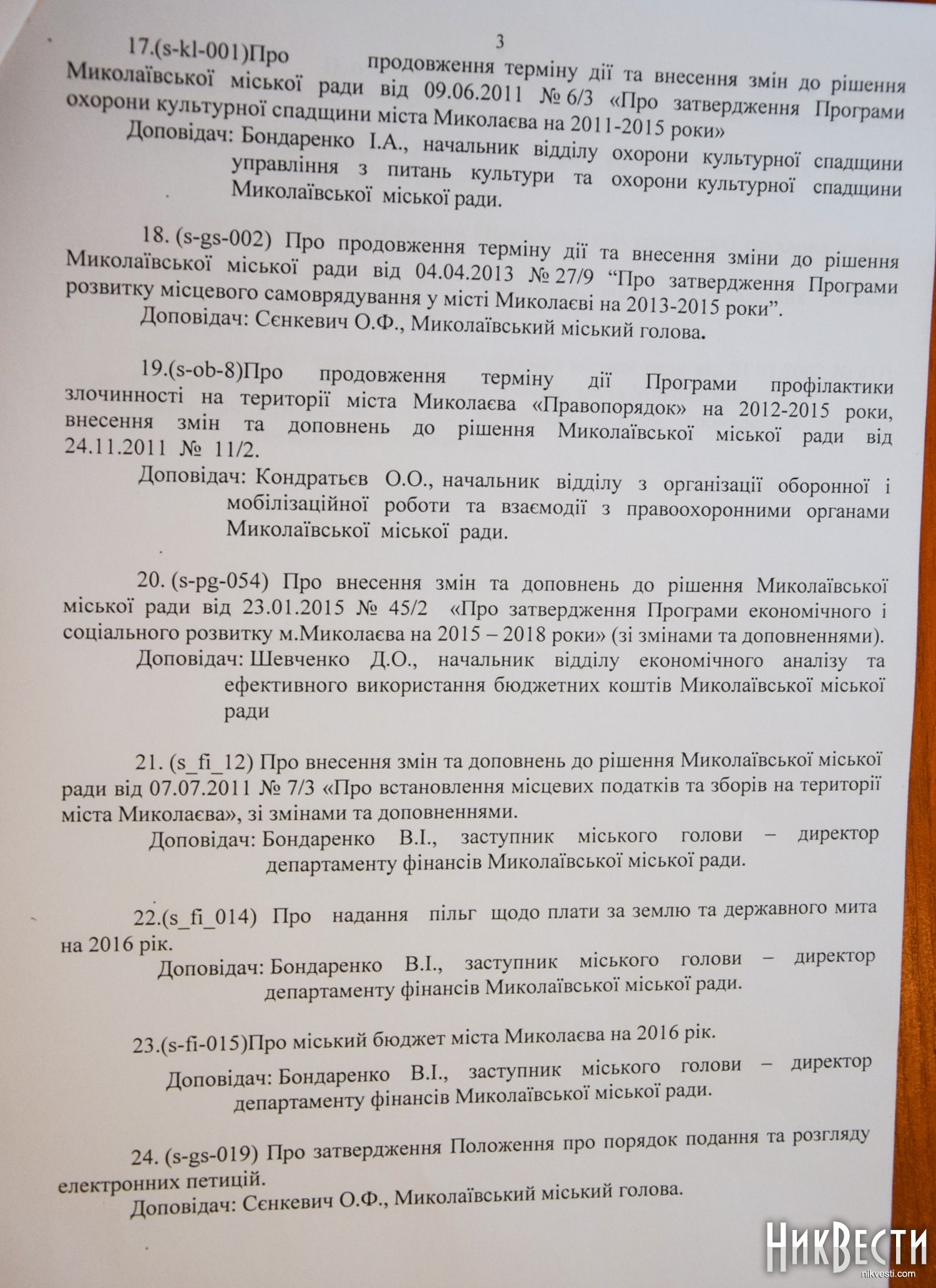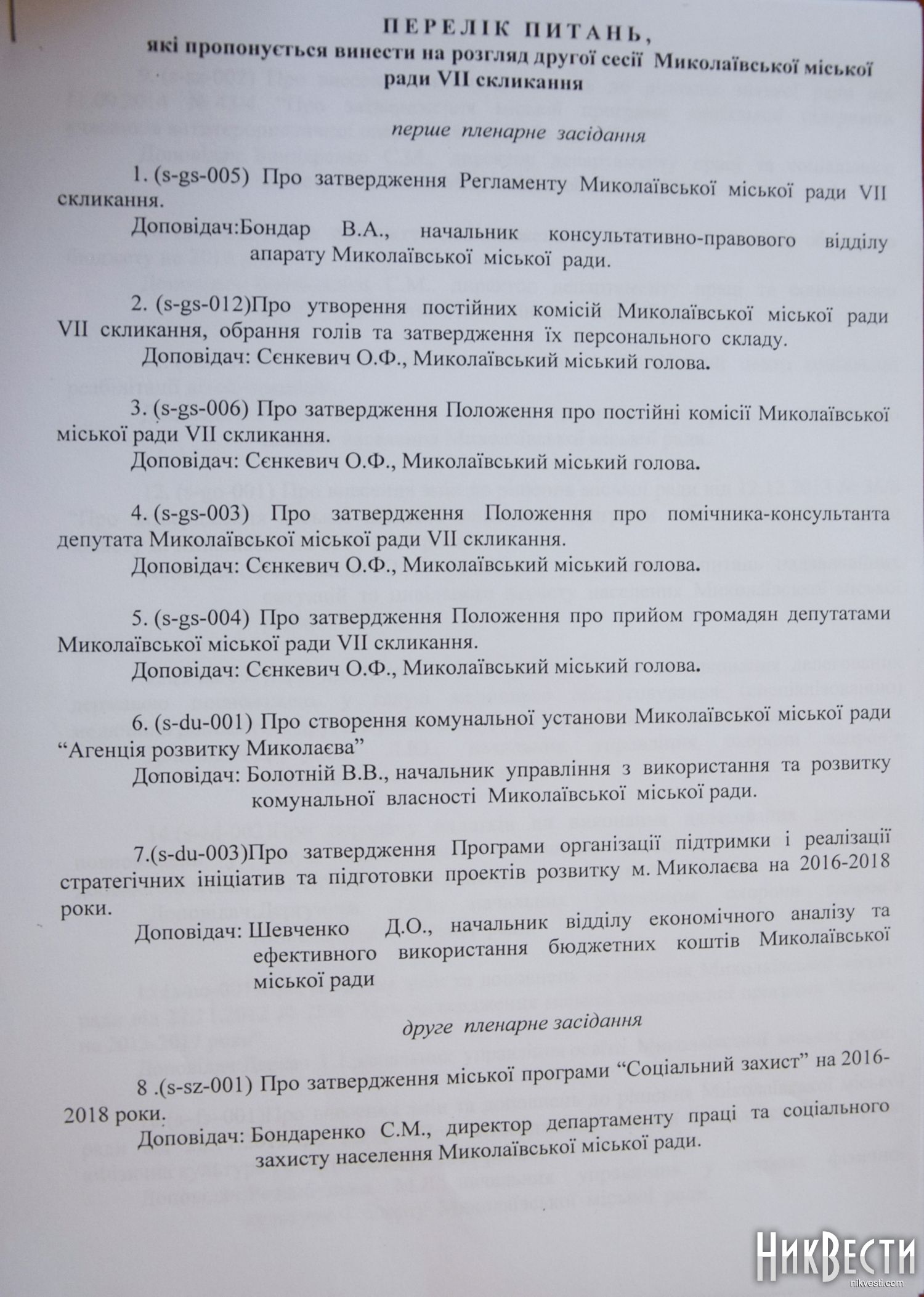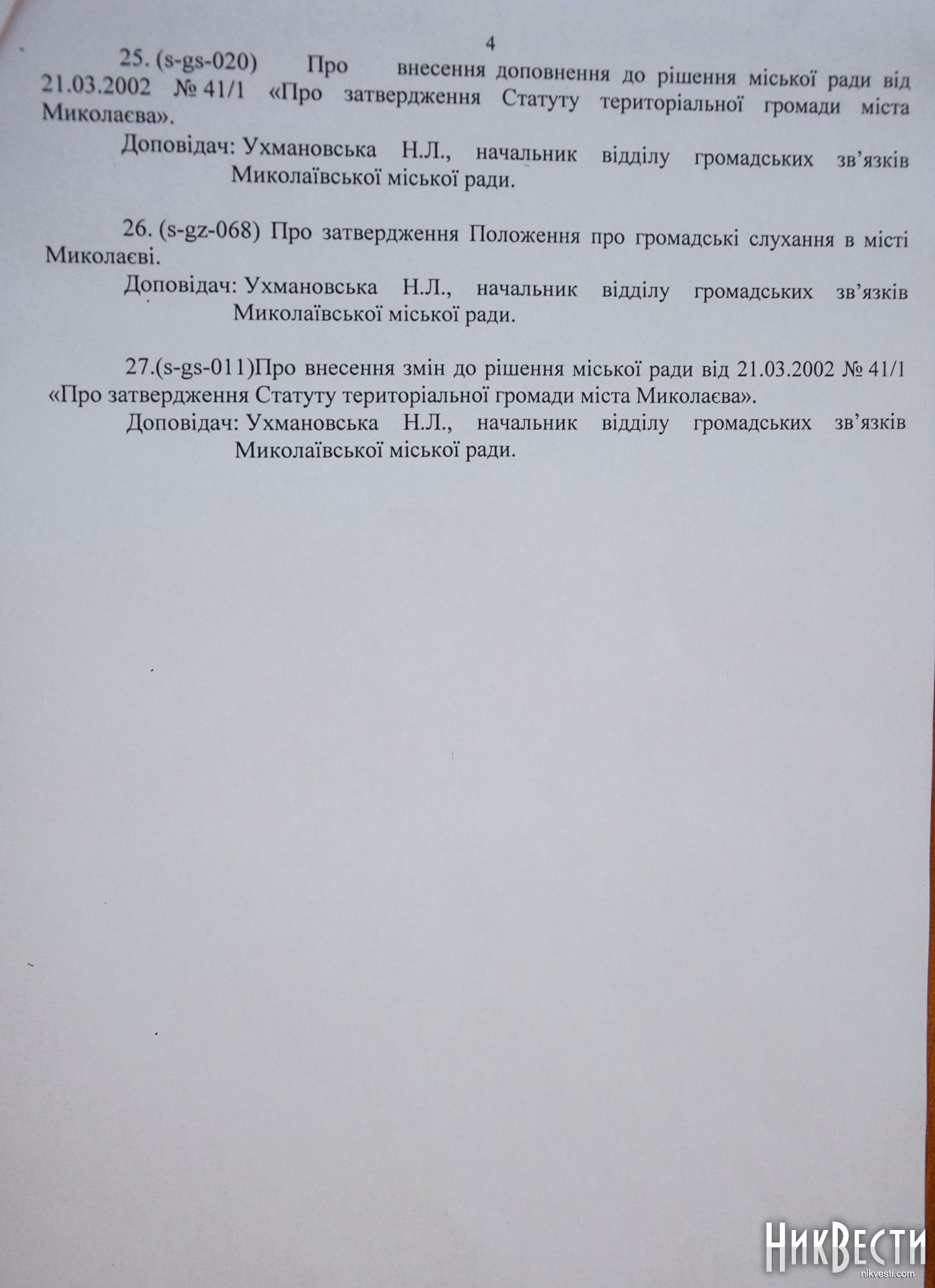 Среди добавленных вопрос о принятии положения об общественных слушаниях, утверждение положения об электронных петициях, а также внесение изменений в устав города Николаева.
