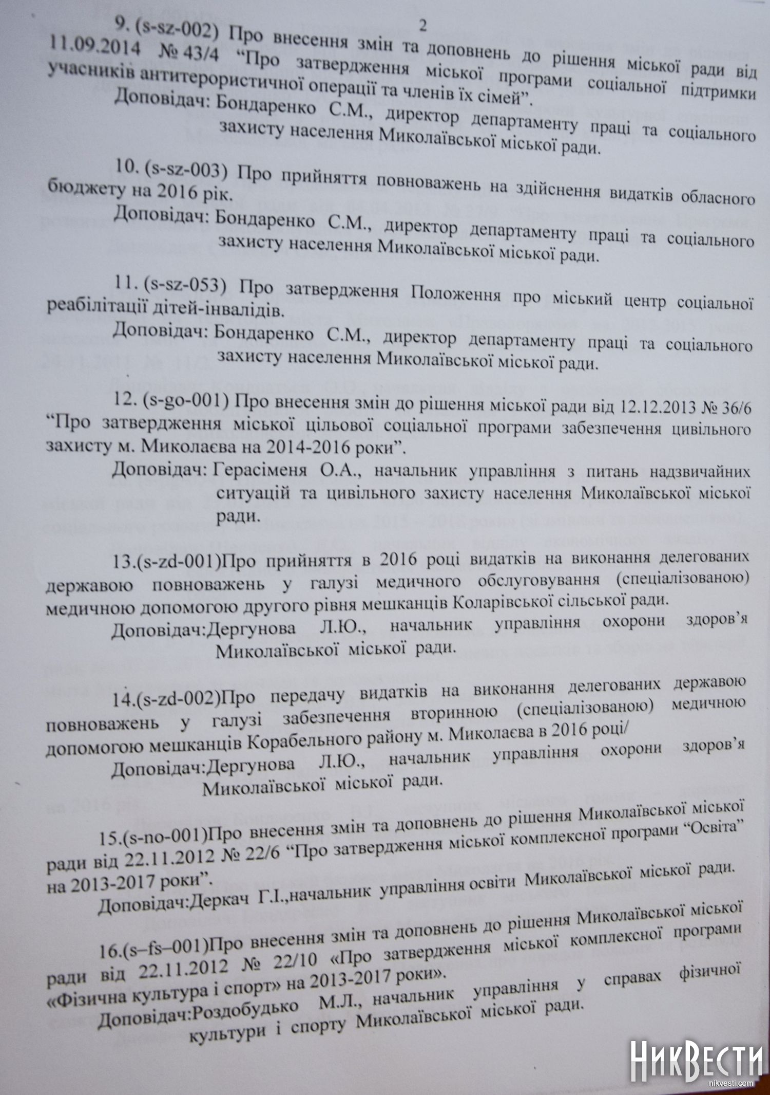 Ранее сообщалось, что вторая сессия Николаевского городского совета VII созыва рассчитана на два пленарных заседания, которые состоятся 21 и 28 января. Первое пленарное заседание депутаты посвятят вопросам регламента работы городского совета, а второе январское заседание – принятию бюджета города на 2016 год.