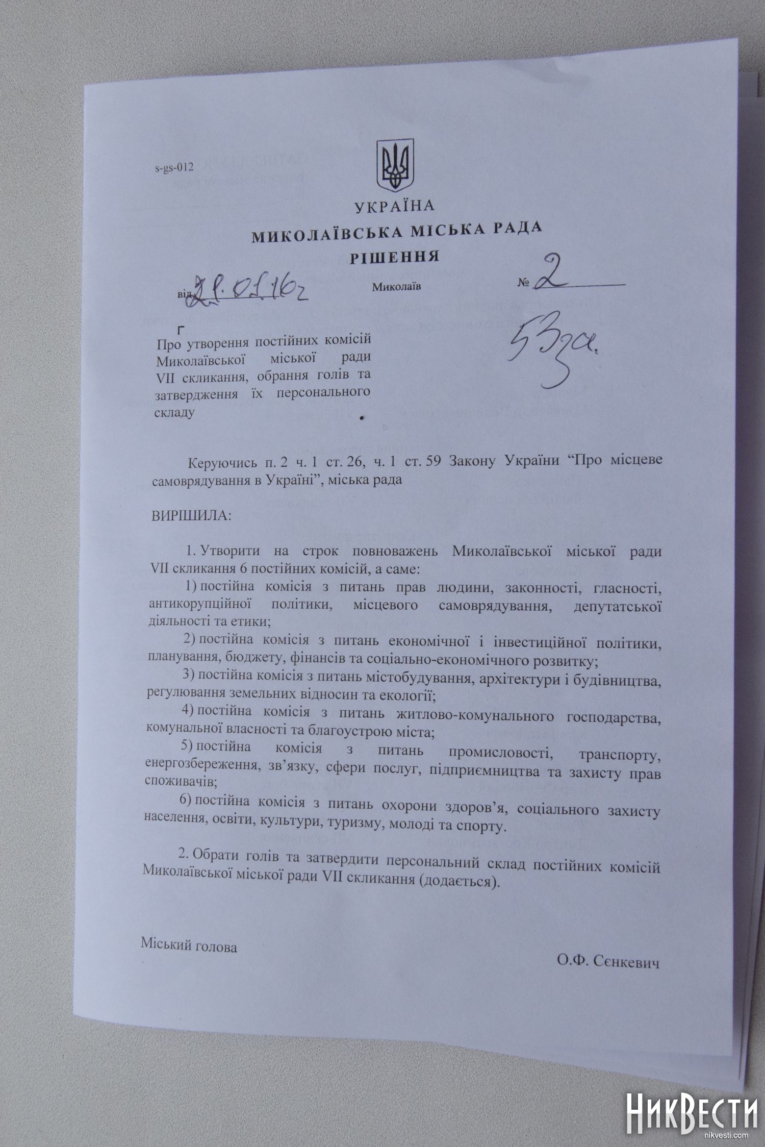 Сегодня, 21 января, на сессии Николаевского городского совета депутаты проголосовали за создание шести постоянных комиссий.