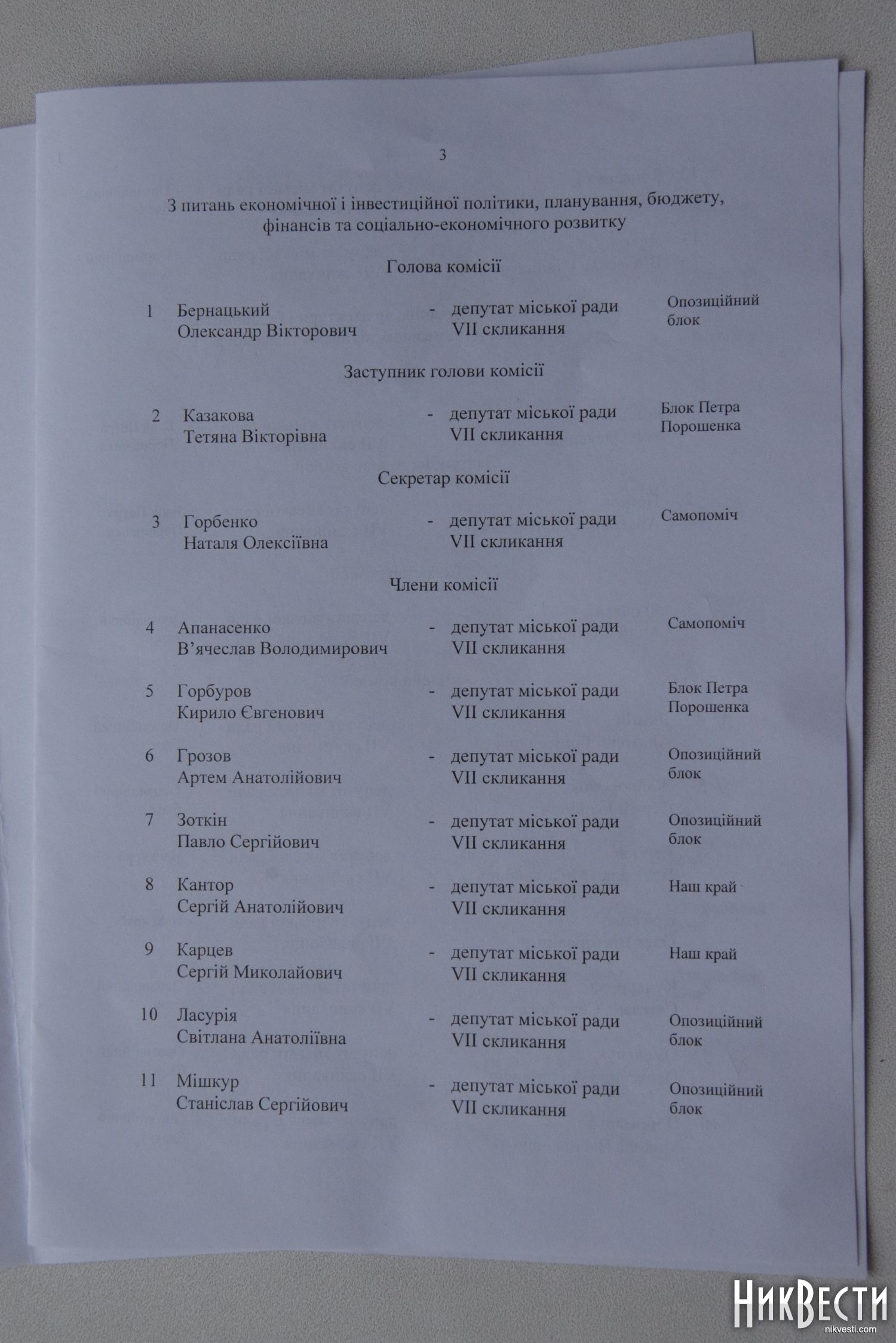 Комиссия по вопросам экономической и инвестиционной политики, планирования, бюджета, финансов и социально-экономического развития - представитель фракции «Оппозиционный блок» Александр Бернацкий.